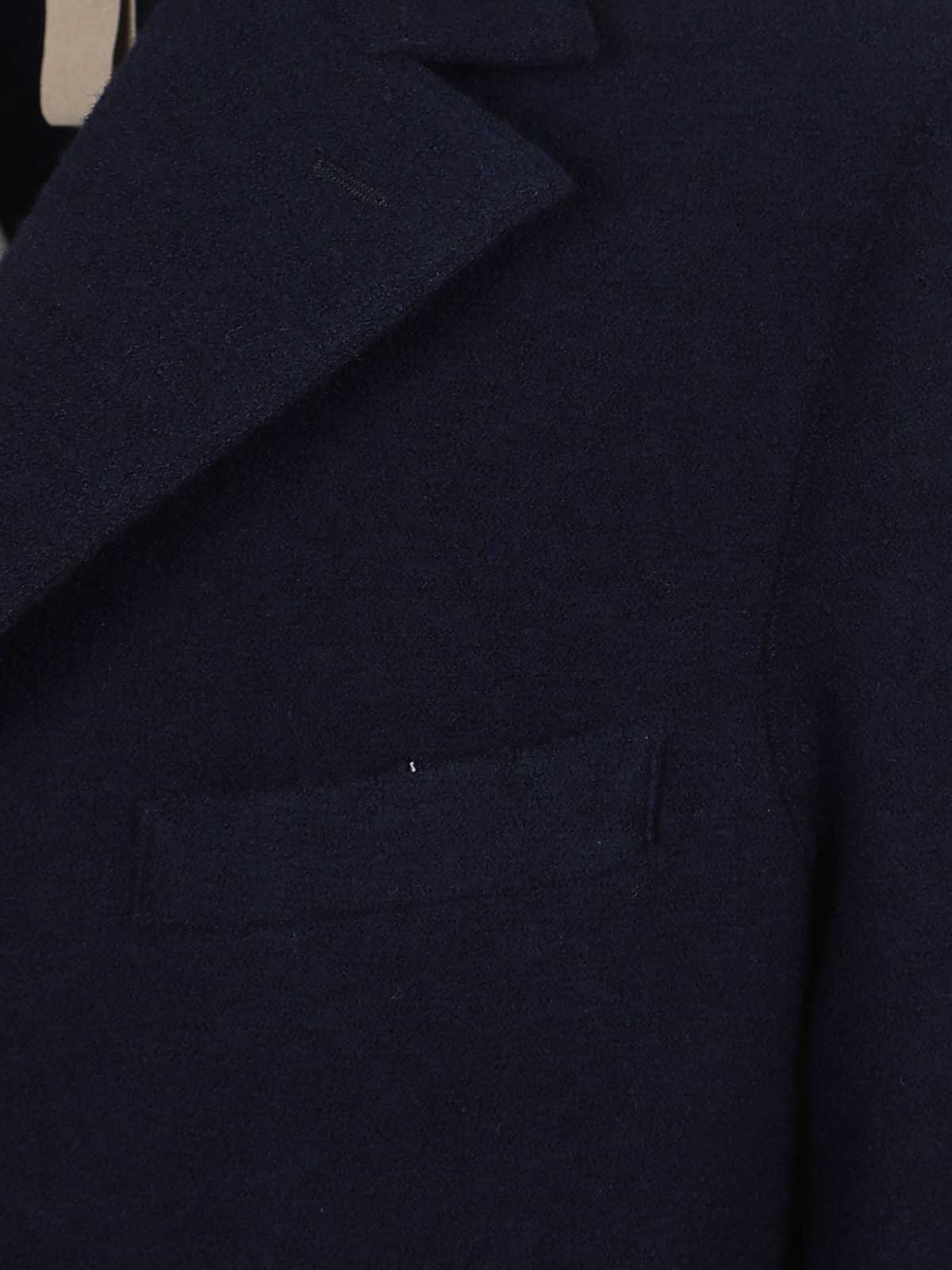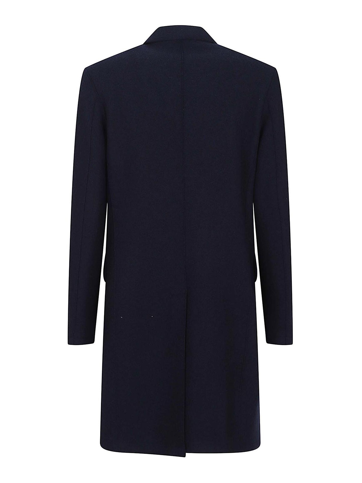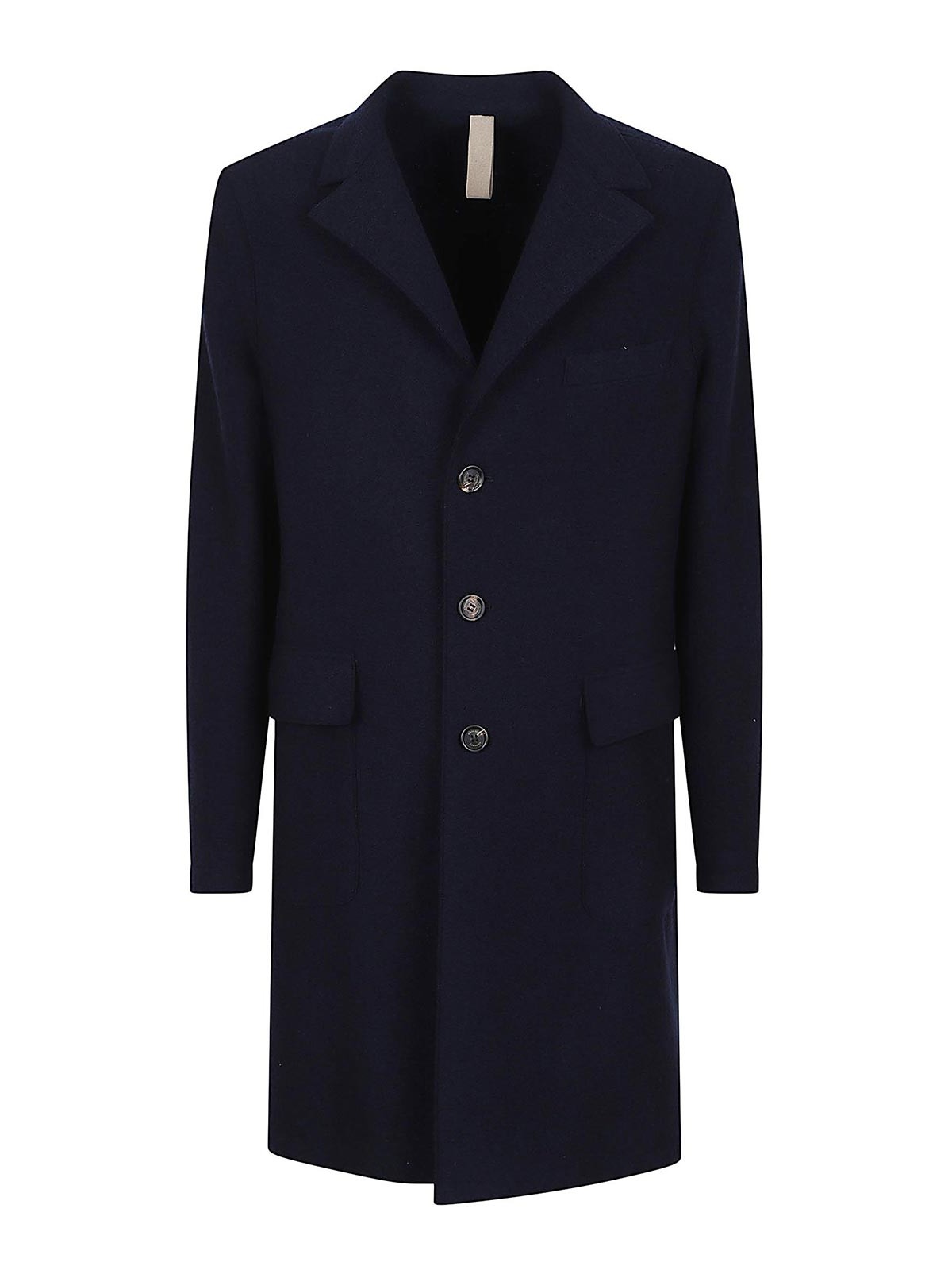 Manteau en pure laine de la marque Eleventy, revers en pointe, manches longues, fermeture boutonnée sur le devant, deux poches à rabat et une poche poitrine passepoilée, coupe classique, jusqu'aux genoux.