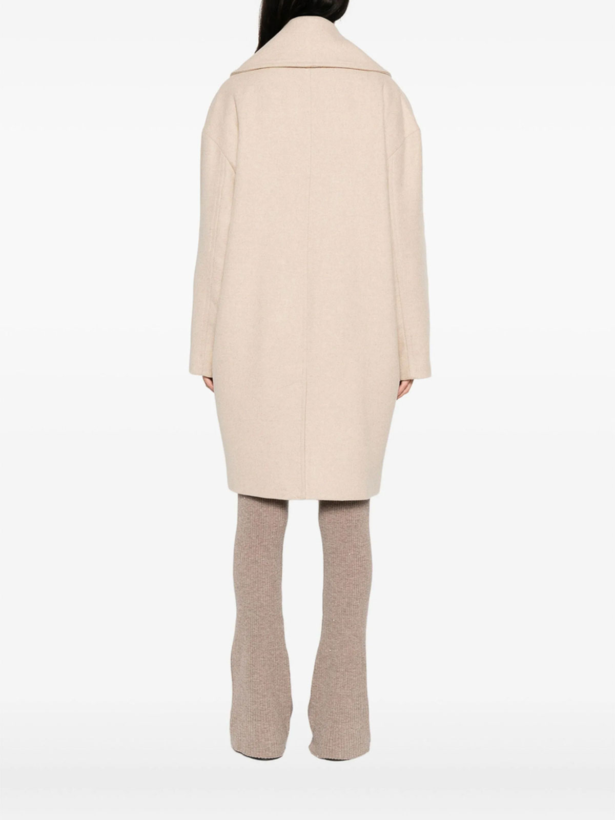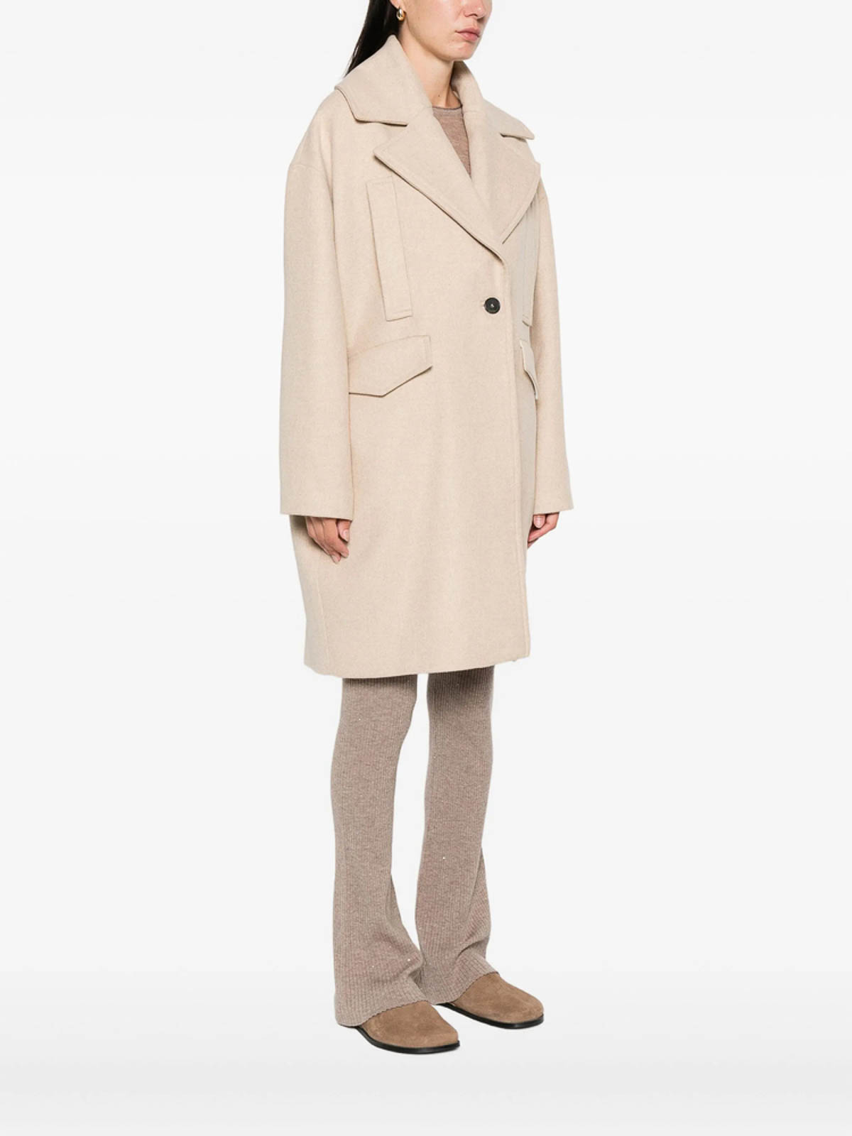 Poches à rabat boutonnées beiges, revers crantés, manches longues, ourlet droit