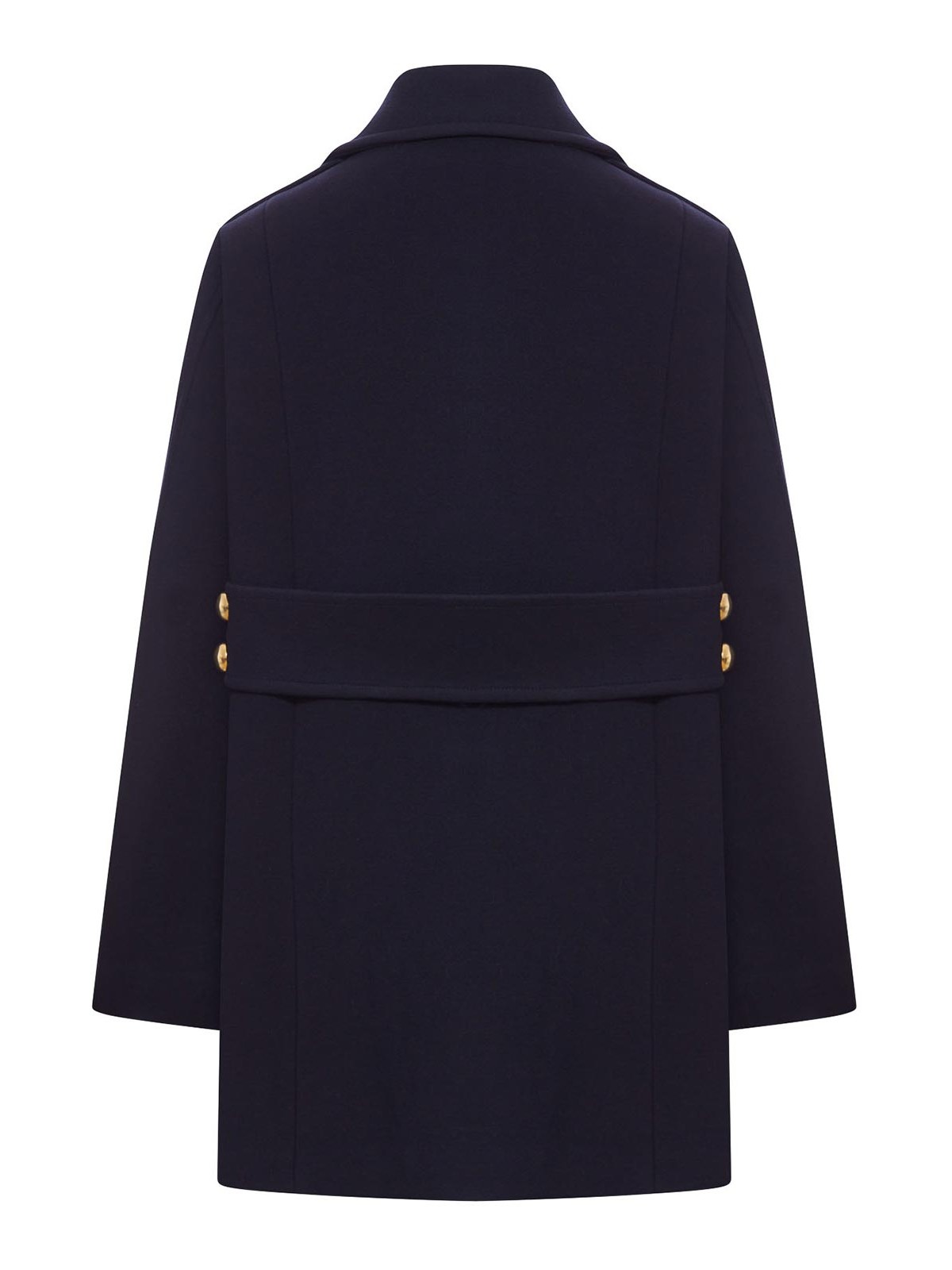 Col classique, double boutonnage boutonné, deux poches plaquées à rabats, manches longues, ourlet droit, bande arrière à quatre boutons et tissu mélangé, bleu marine