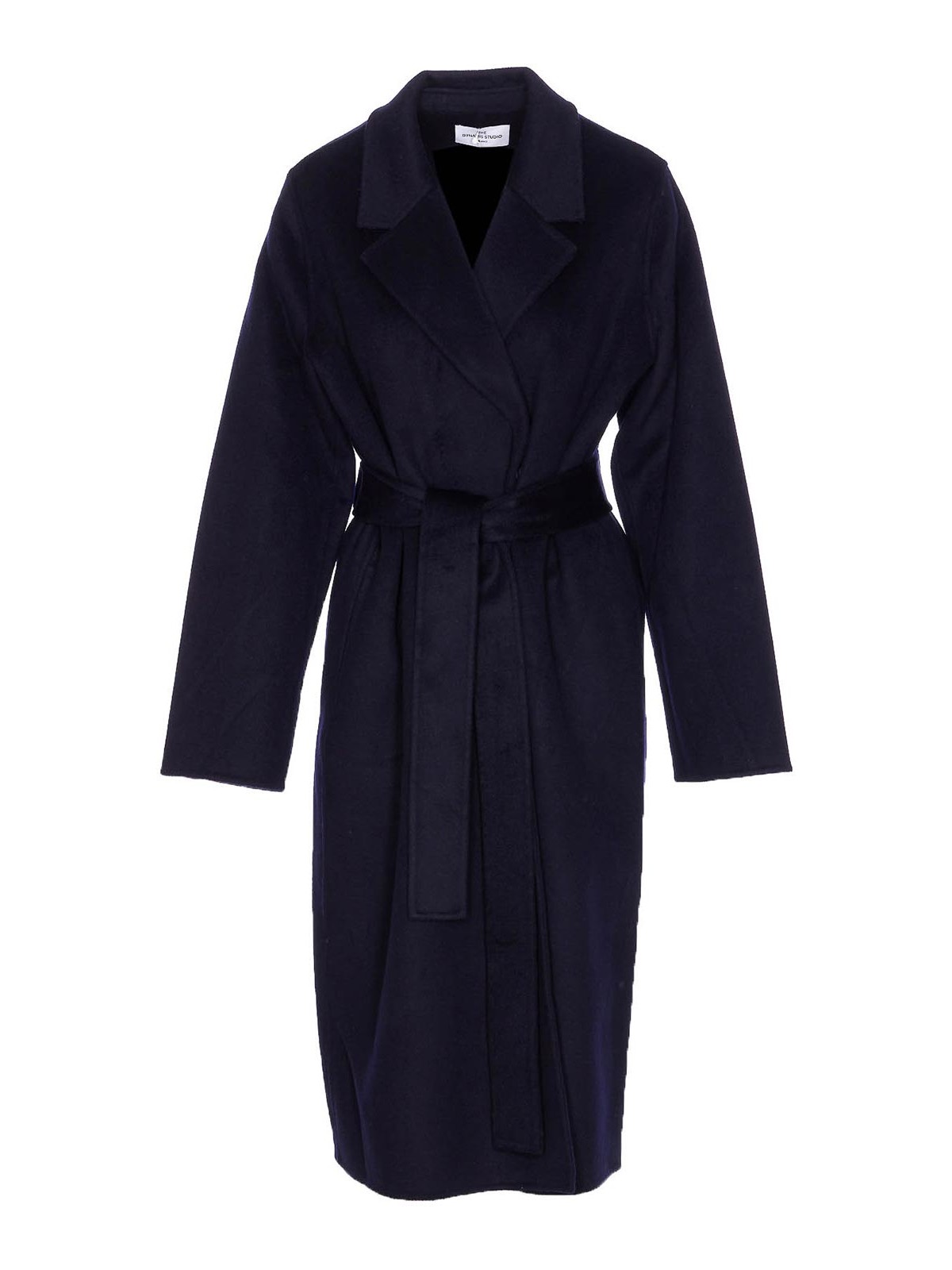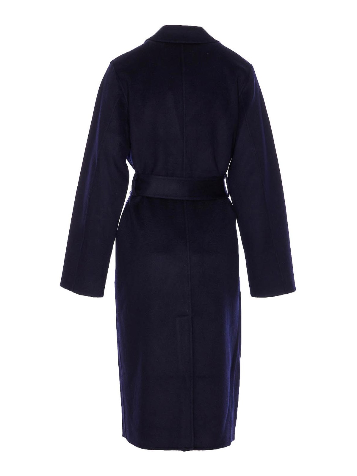 Manteau Milan bleu studio The Dynamis, boutonnage à double boutonnage, ceinture à la taille, manches longues, poches latérales, fente dans le dos