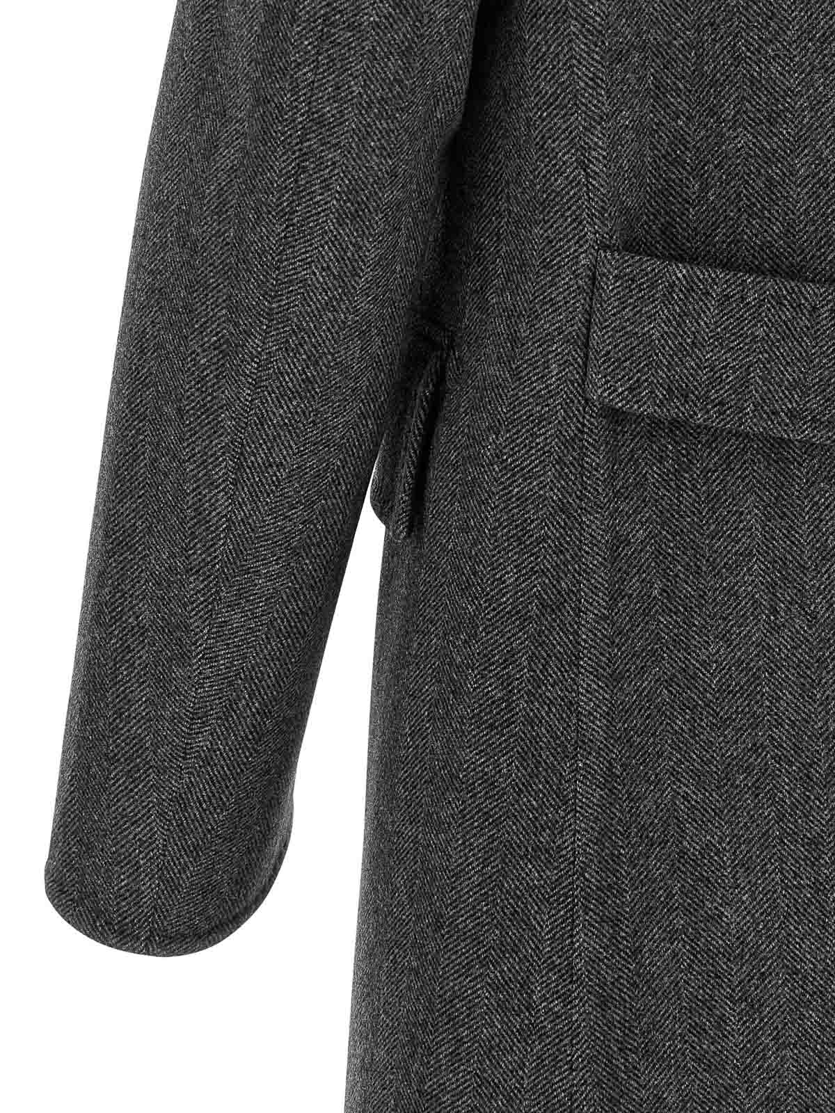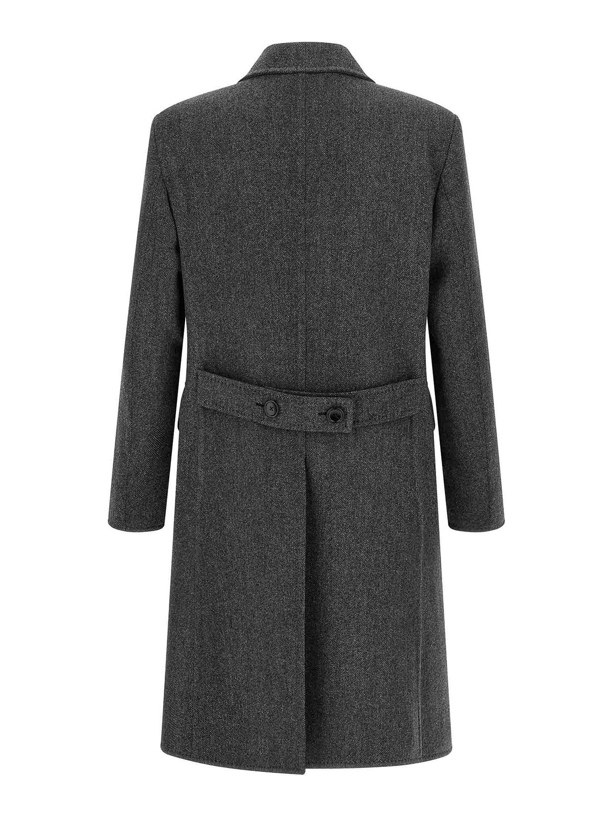 Manteau à double boutonnage à motif à chevrons avec boutons et revers en forme de lance, poche poitrine, poches à rabat, manches longues, bretelles structurées, fente d'aération et martingale dorsale