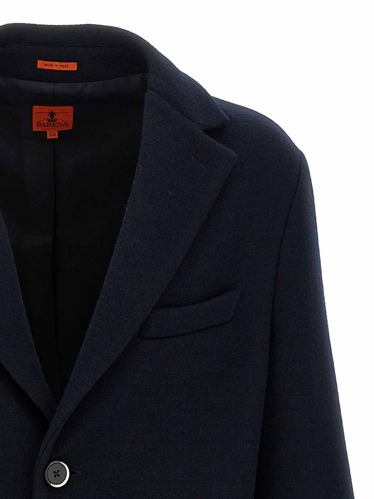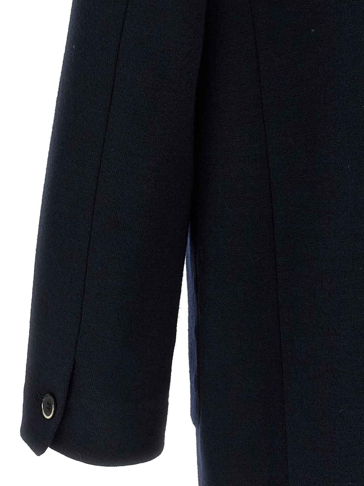 manteau en jersey de laine Baron avec col en V avec revers en pointe, fermeture boutonnée à simple boutonnage, manches longues.