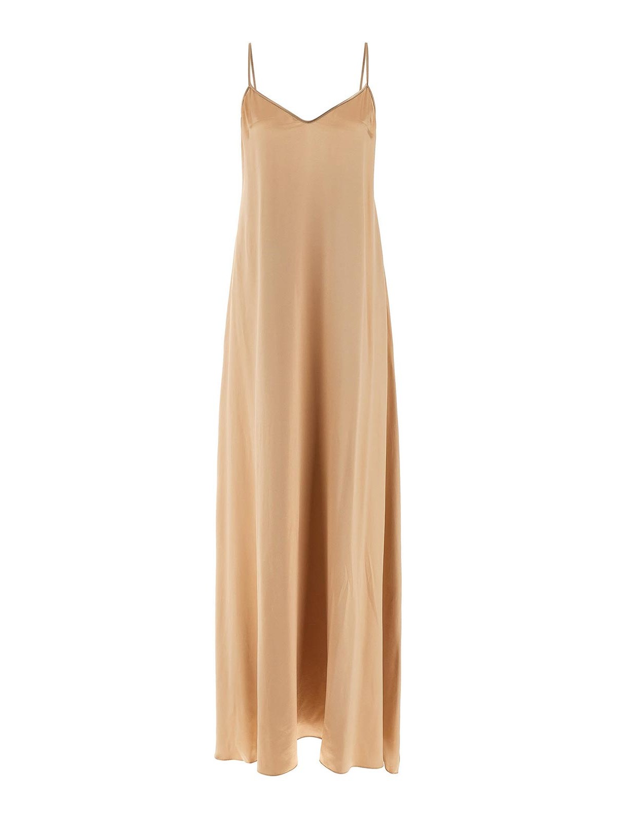 Robe longue en viscose fluide, col V, fines bretelles, sans manches.