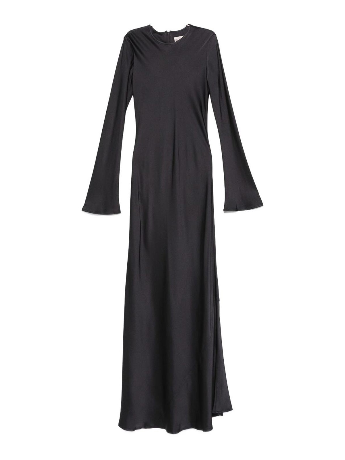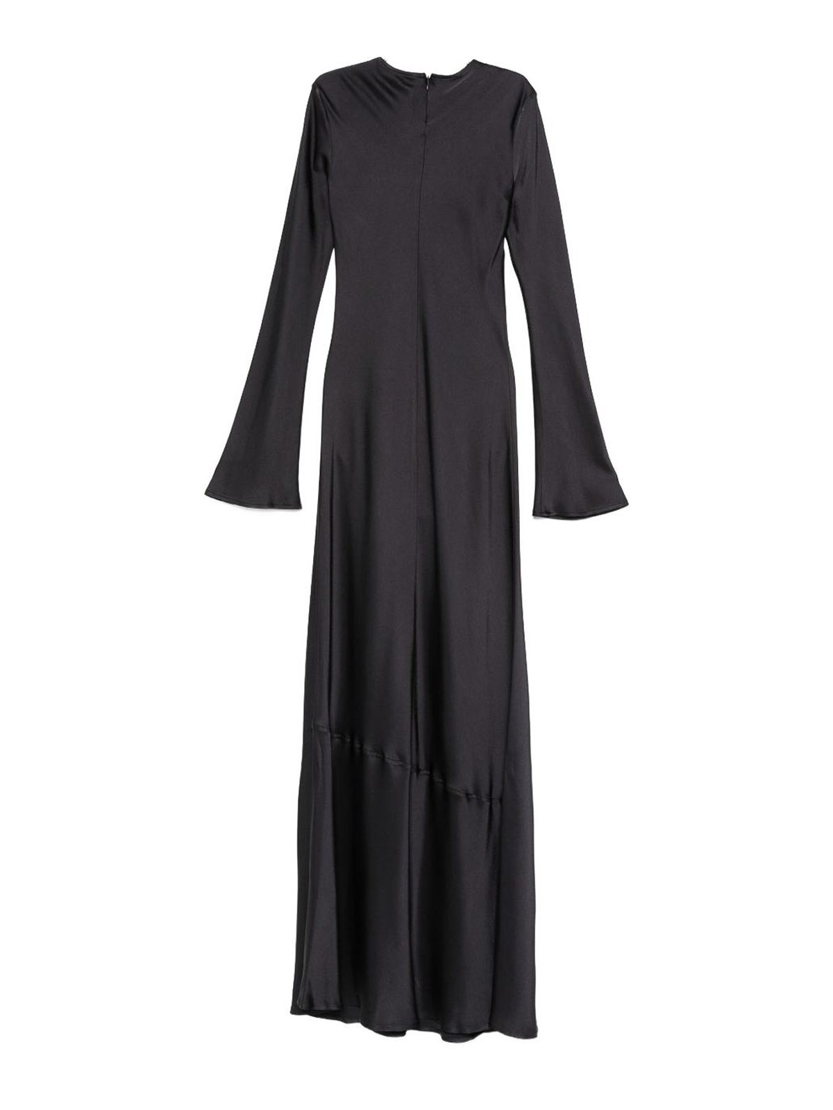 Manches évasées noires, col rond, fermeture à glissière arrière, longueur au sol, coutures ton sur ton