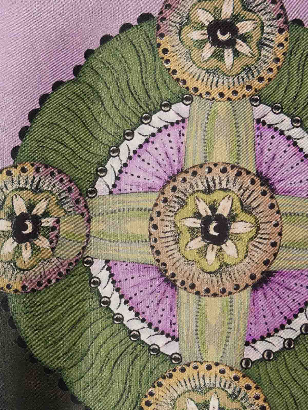 Robe longue à manches évasées couleur : rose en soie, manches évasées, col lavalière, motif floral