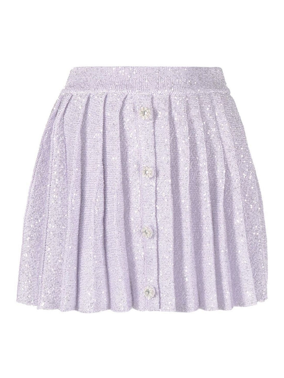 Minijupe plissée à paillettes violettes lilas d'Autoportrait en mélange de coton et laine, ornement de paillettes entièrement plissées, ceinture élastiquée et fermeture boutonnée sur le devant