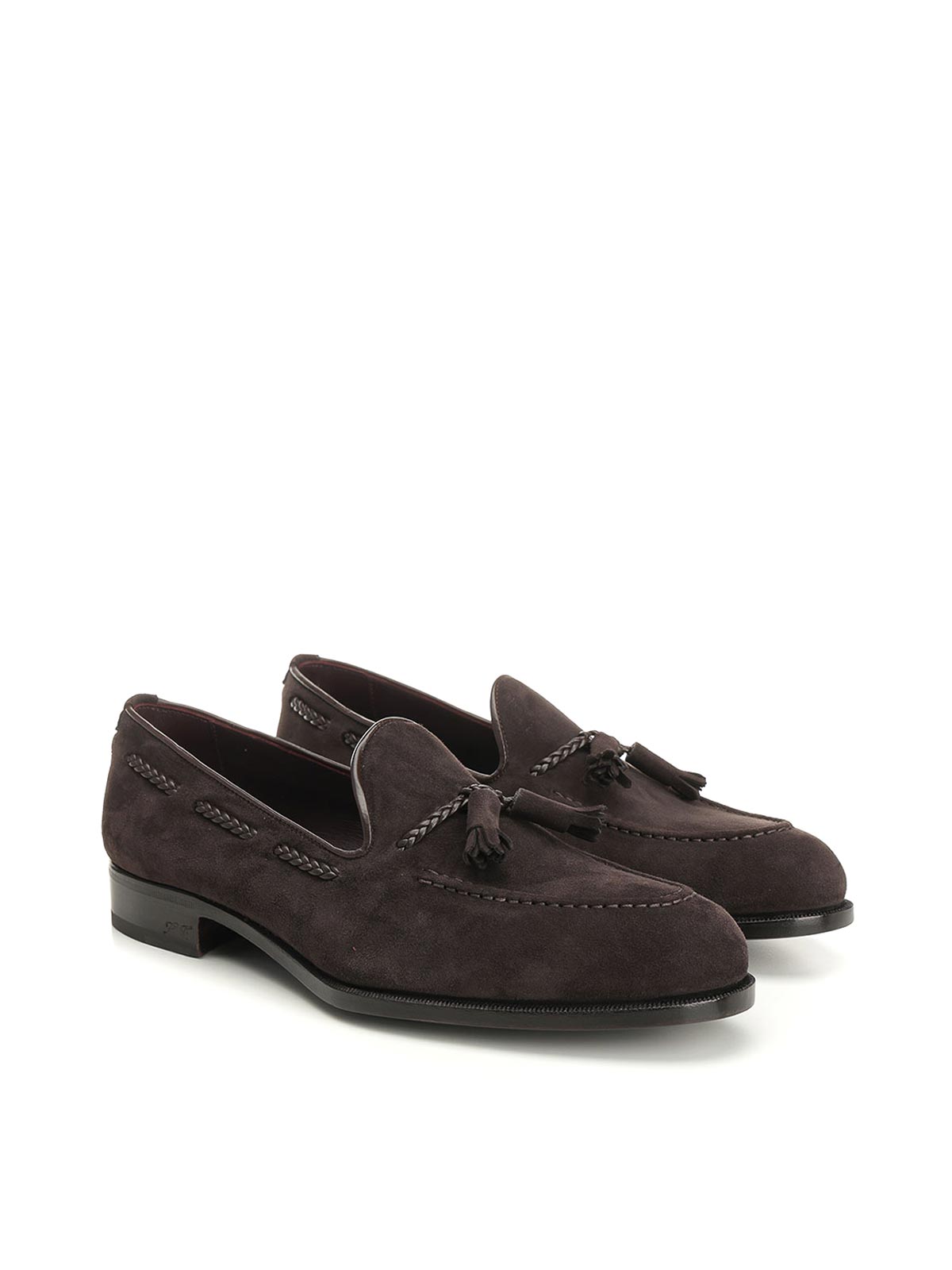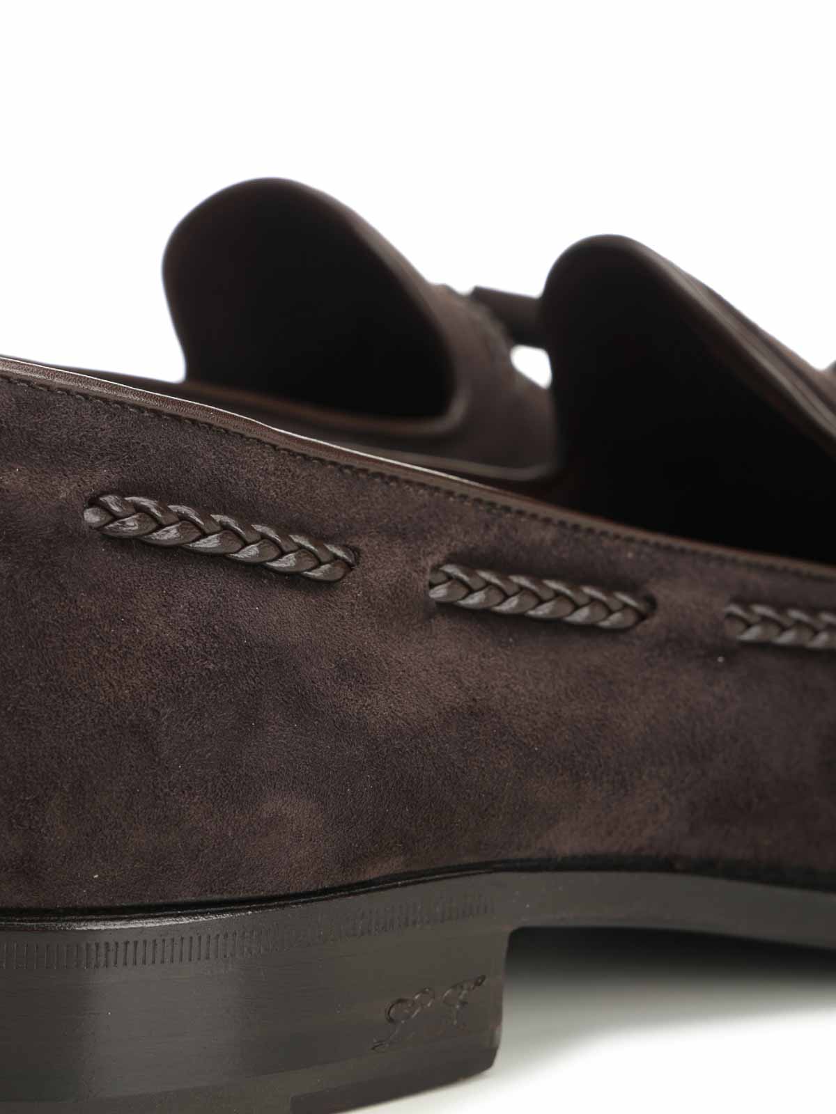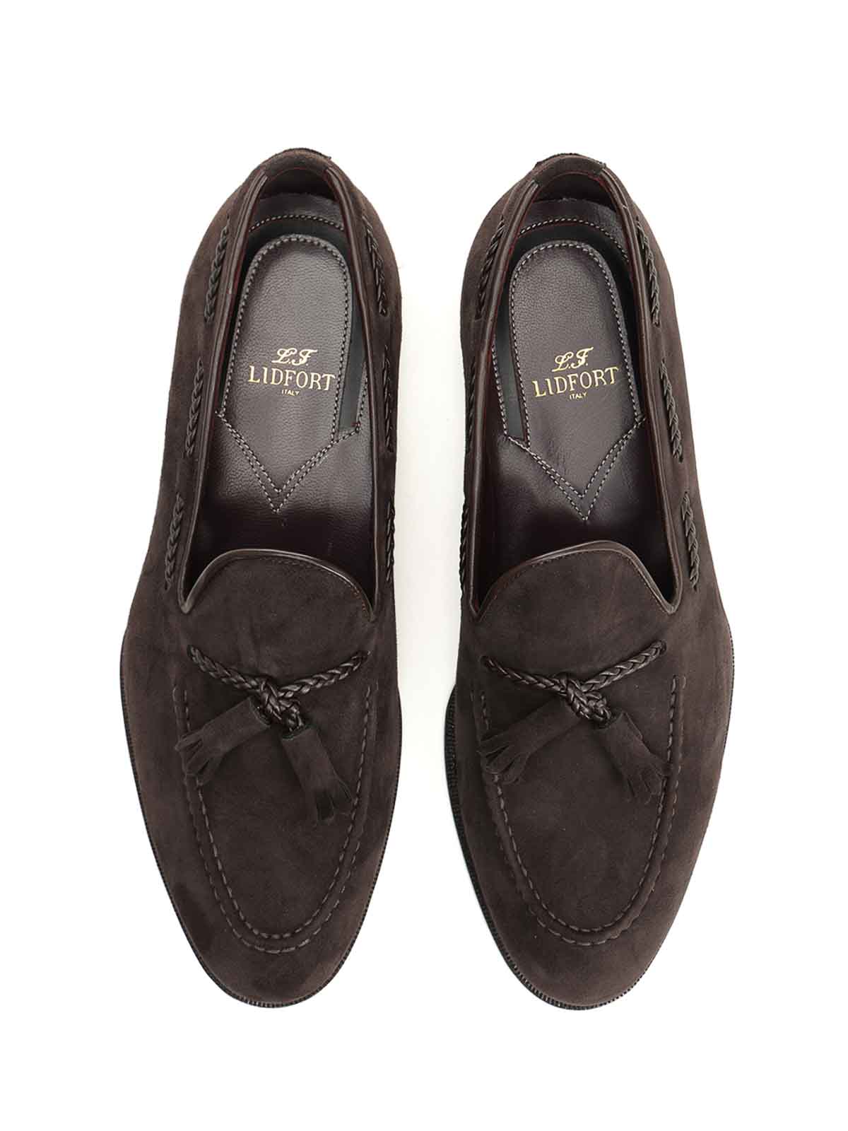 Mocassin brun foncé de la marque Lidfort avec pompon et profil tressé orné et