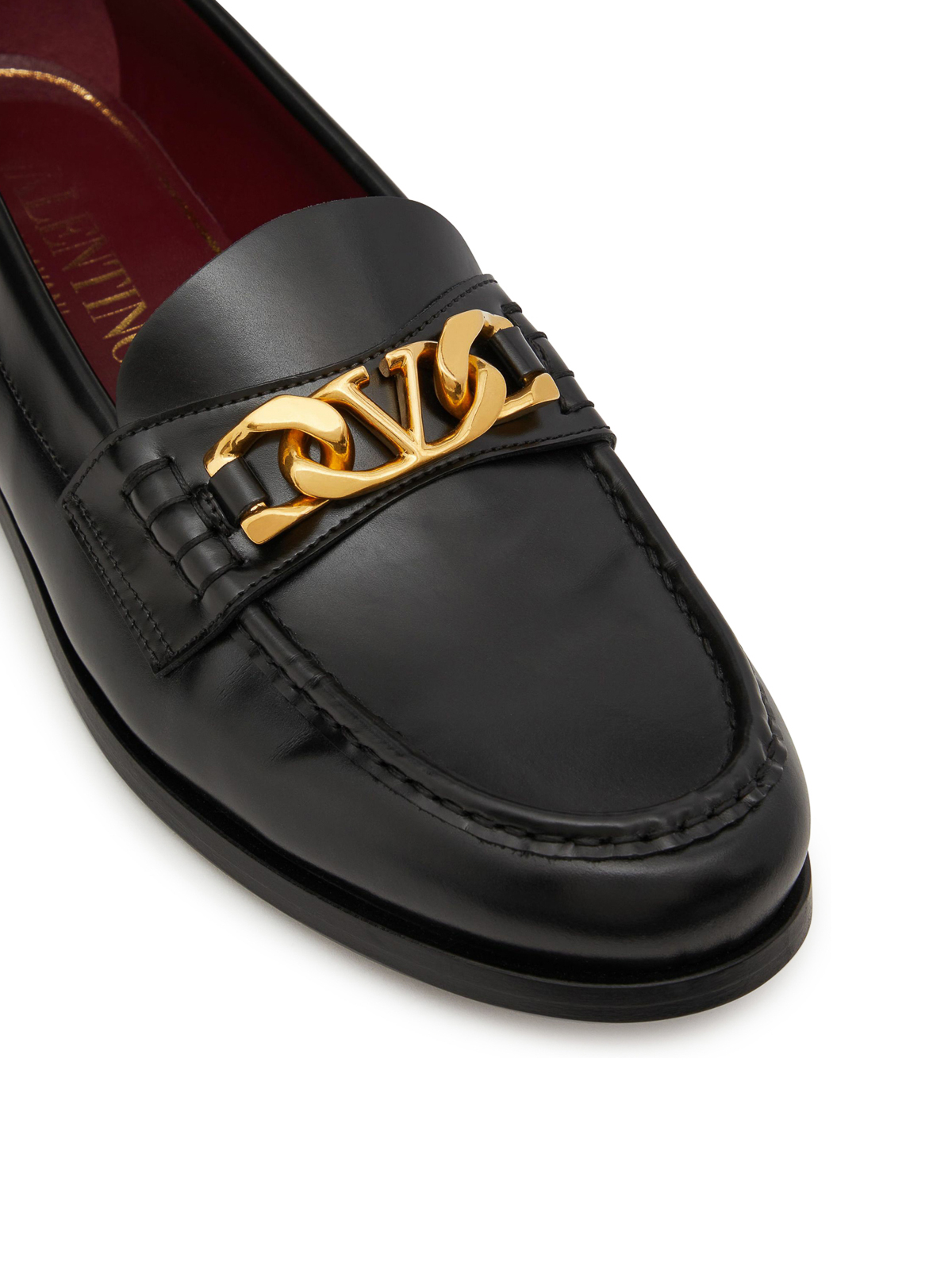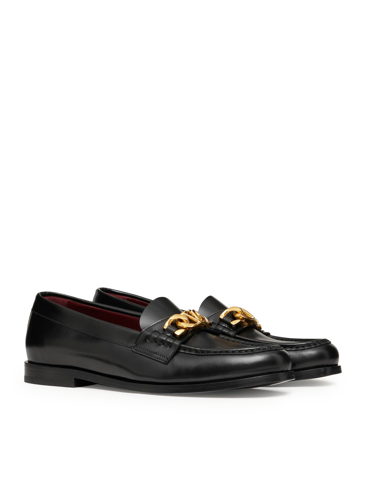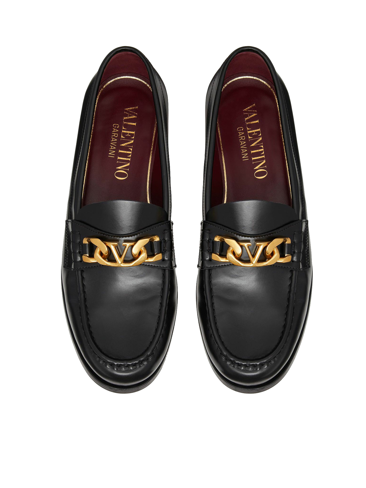 Mocassin à chaîne vlogo Valentino Garavani en cuir de veau avec semelle en cuir de veau avec semelle en cuir au fini laiton vieilli
