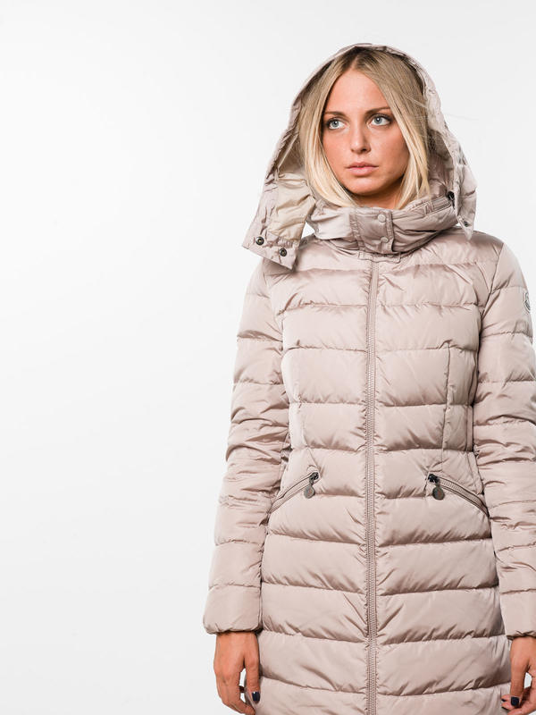 'Flamme' padded coat featuring a concealed hood, a high standing collar, a front zip fastening, long sleeves, a fitted waist, side zipped pockets and a mid-length. Confortable in your every day city style