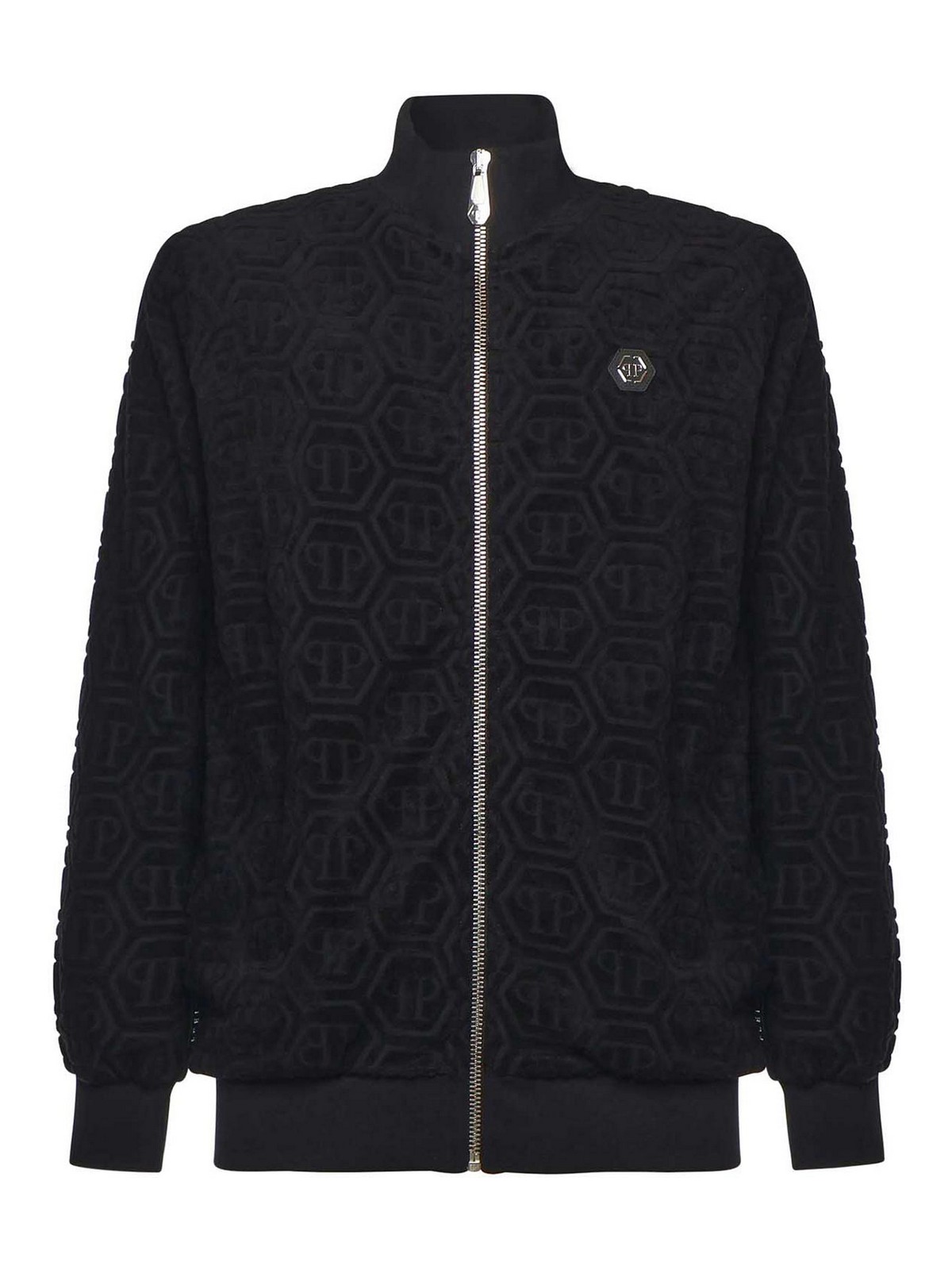 Logo zippé en polaire sur la poitrine, deux poches fendues, ourlet côtelé, taille indiquée sur la photo : M, couleur : noir