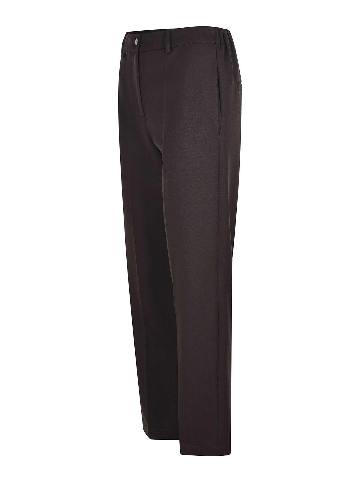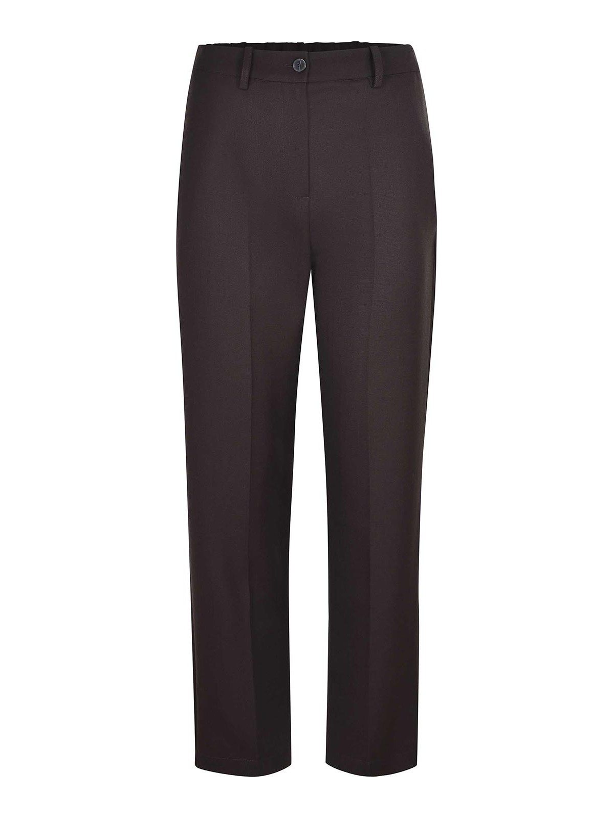Pantalon Alysi en laine mélangée de couleur chocolat. fermeture à glissière et bouton. passants de ceinture. poches latérales. élastiqué à l'arrière. poches à l'arrière. 55 % laine vierge, 45 % polyester. fabriqué en Italie.