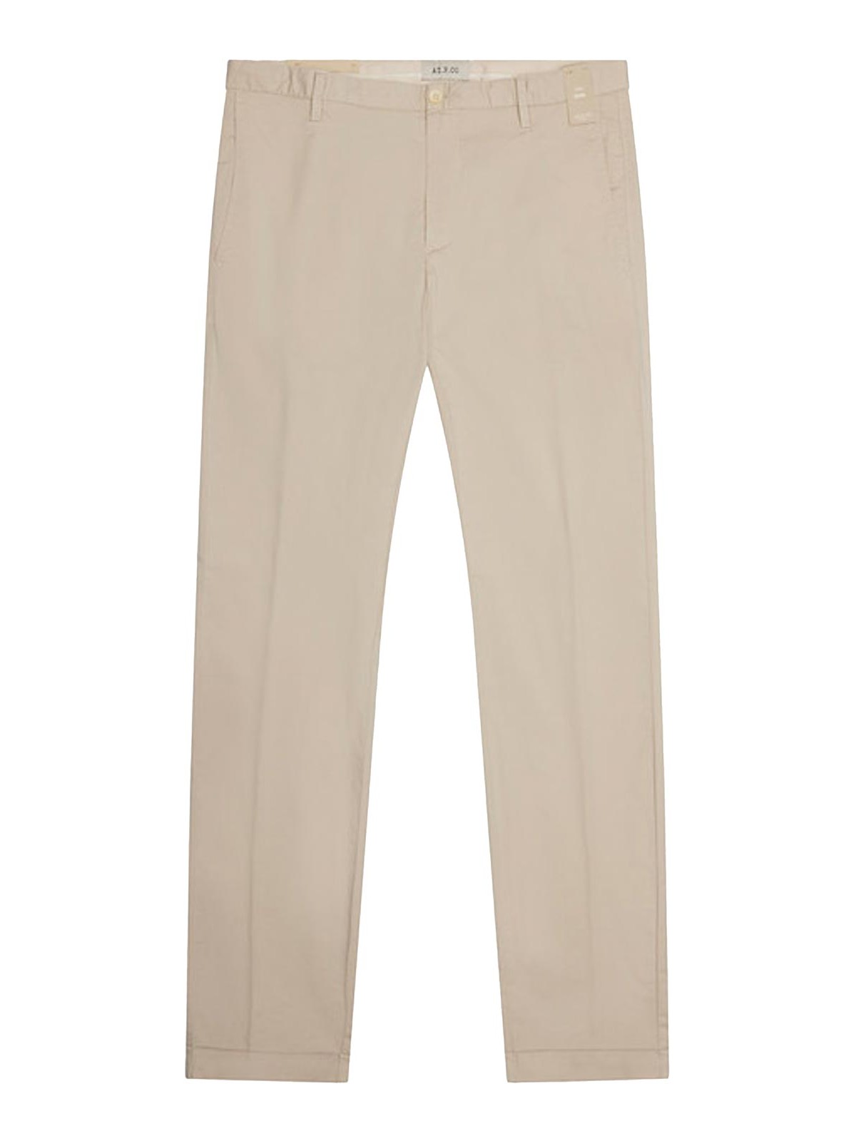 Pantalon chino stretch avec ouverture sur le bas, coupe ajustée, fermeture zippée et boutonnée, poches obliques sur le devant et poches arrière avec patin à roulettes, instructions de lavage : laver en machine à laver à 30 degrés maximum, ne pas utiliser de javel, ne pas utiliser le sèche-linge, repasser à 150 degrés maximum, utilisable avec n'importe quel solvant à l'exception du tétrachlorilène.