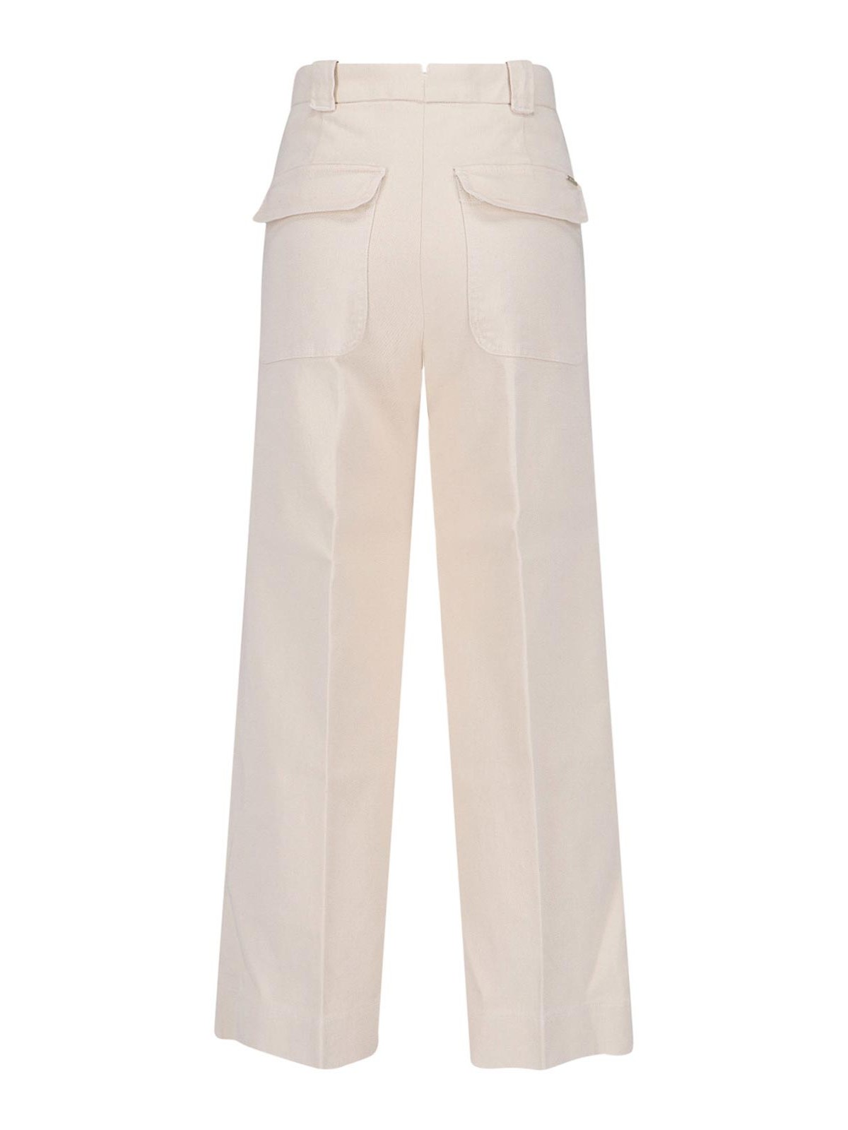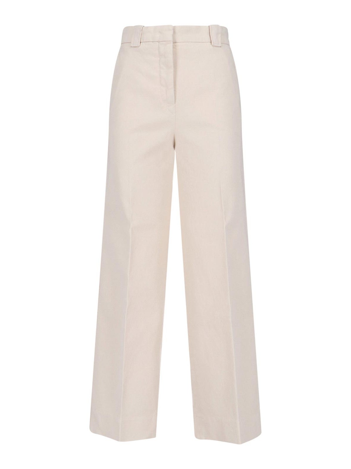 Pantalon à jambes larges Incotex, en coton crème, taille moyenne, passants de ceinture, fermeture à crochet et à glissière, deux poches latérales, deux poches arrière à rabat, jambe large.