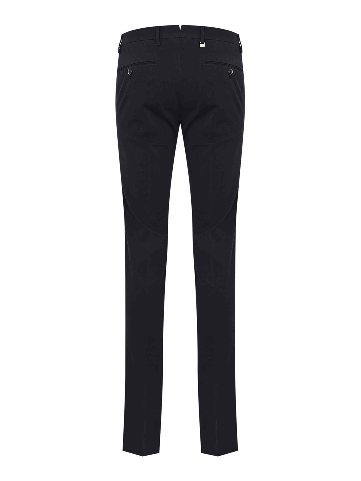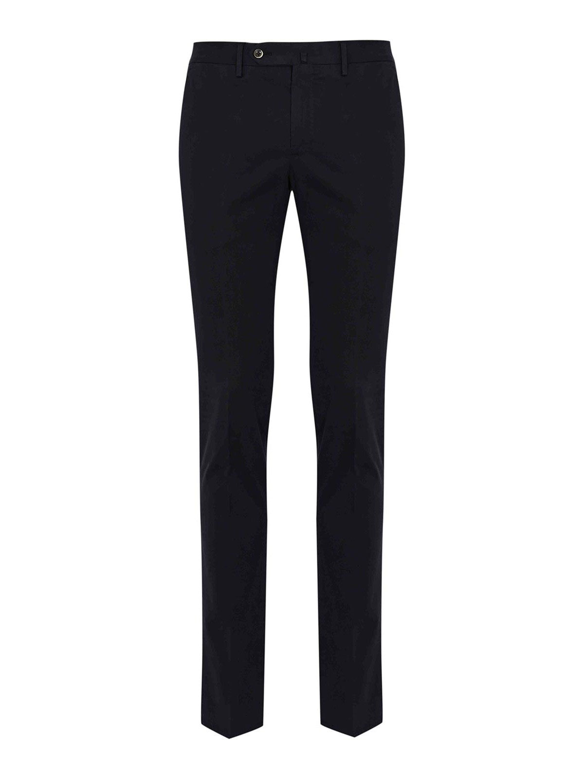 Pantalon en coton mélangé à motif PT Torino, blanc uni, taille moyenne, taille moyenne, taille avec passants de ceinture, poches zippées boutonnées et cachées, poches latérales inclinées et poches arrières passepoilées avec longueur boutonnée, design long, épuré et moderne. Construction légère, douce et confortable, adaptée aux températures chaudes. Construction ajustée, attention portée à la doublure, coupe ajustée et non ajustée