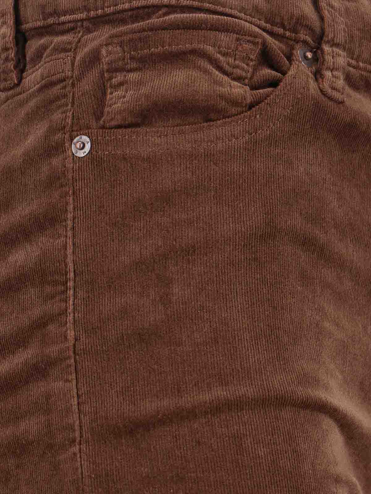 Pantalon droit en velours côtelé, en coton marron, finition en velours côtelé, taille moyenne, passants de ceinture, fermeture boutonnée et zippée, design à cinq poches, jambe droite.