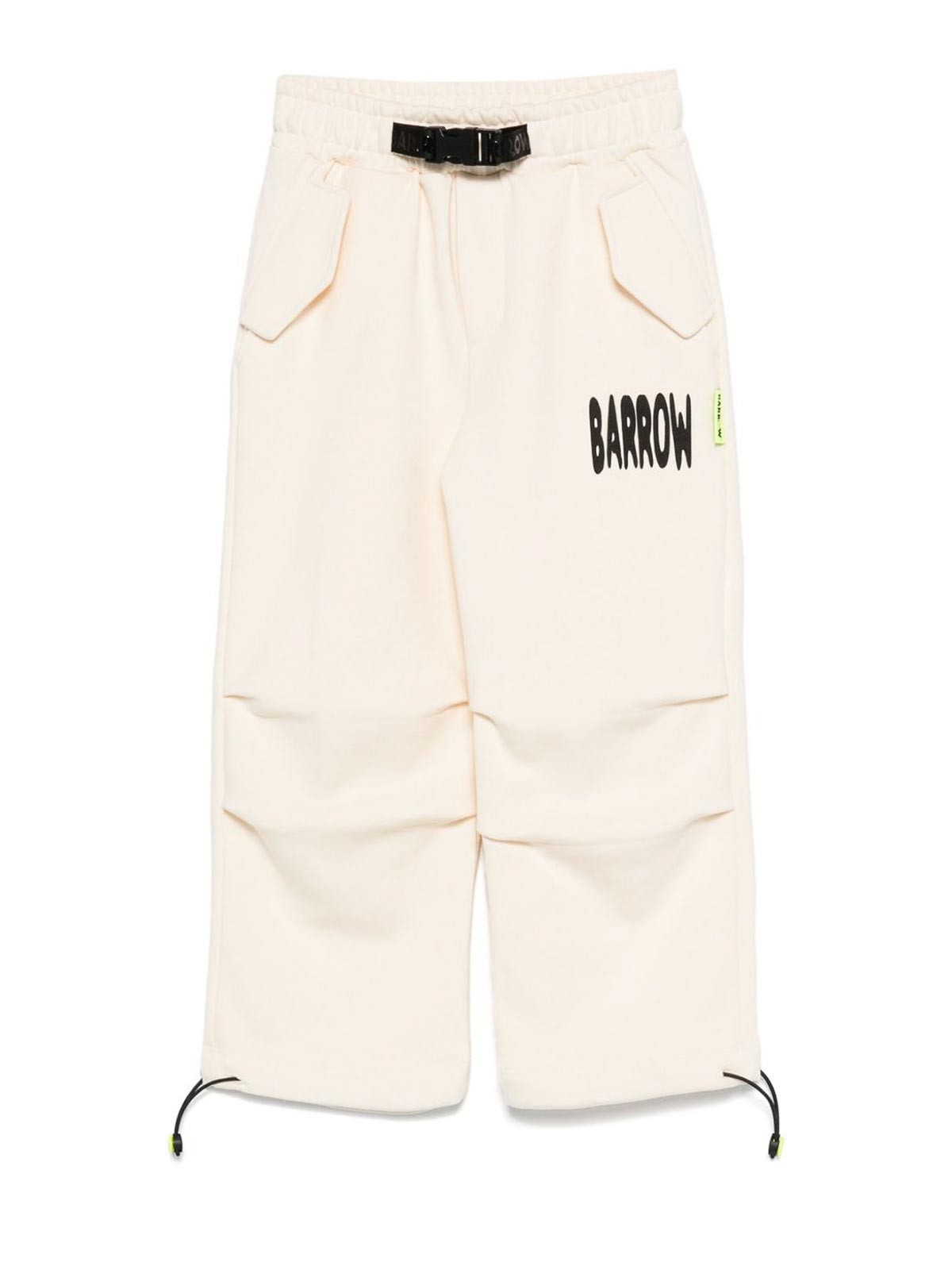 Pantalon avec logo crème, ourlets ajustables avec cordon de serrage, taille élastiquée
