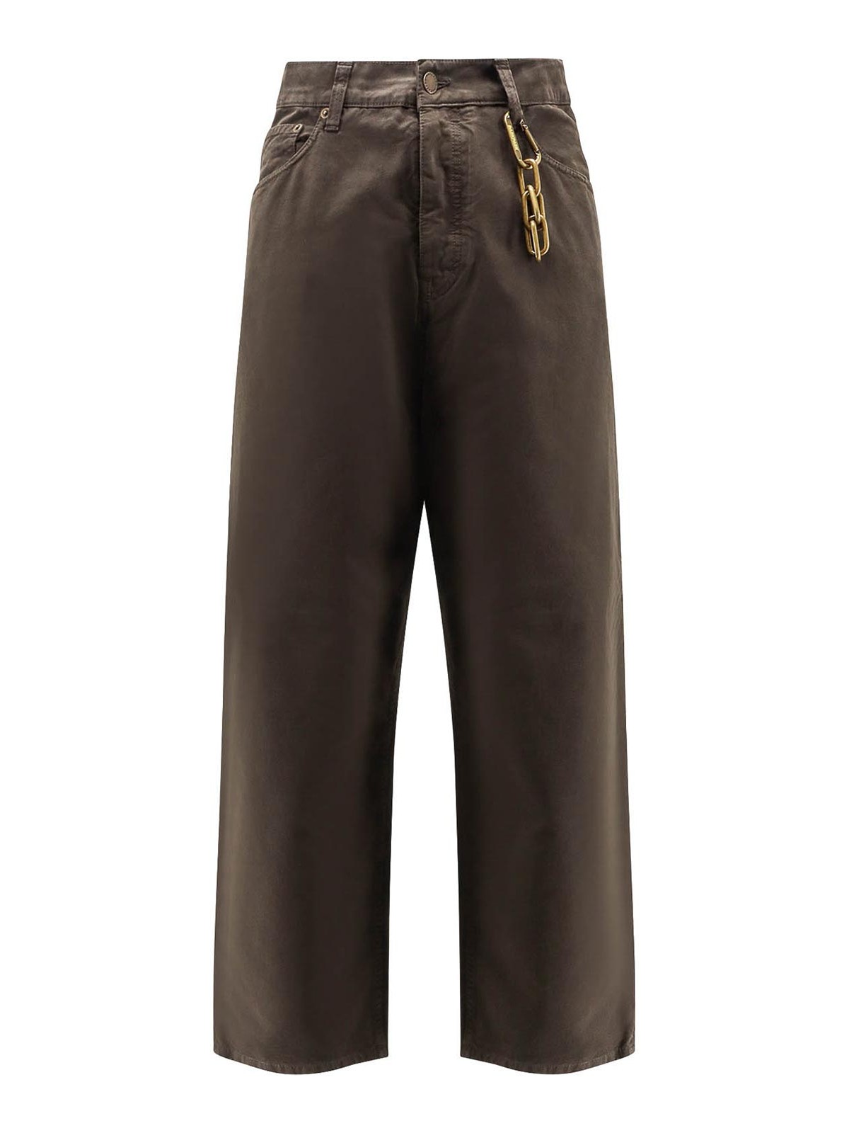 Fermeture boutonnée, cinq poches, chaîne en métal avec logo, fabriqué en Italie, 100 % coton