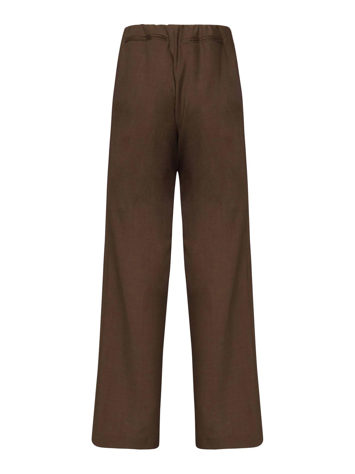 Pantalon ample, poches passepoilées latérales, dos sans corset, jambes larges, couleur marron