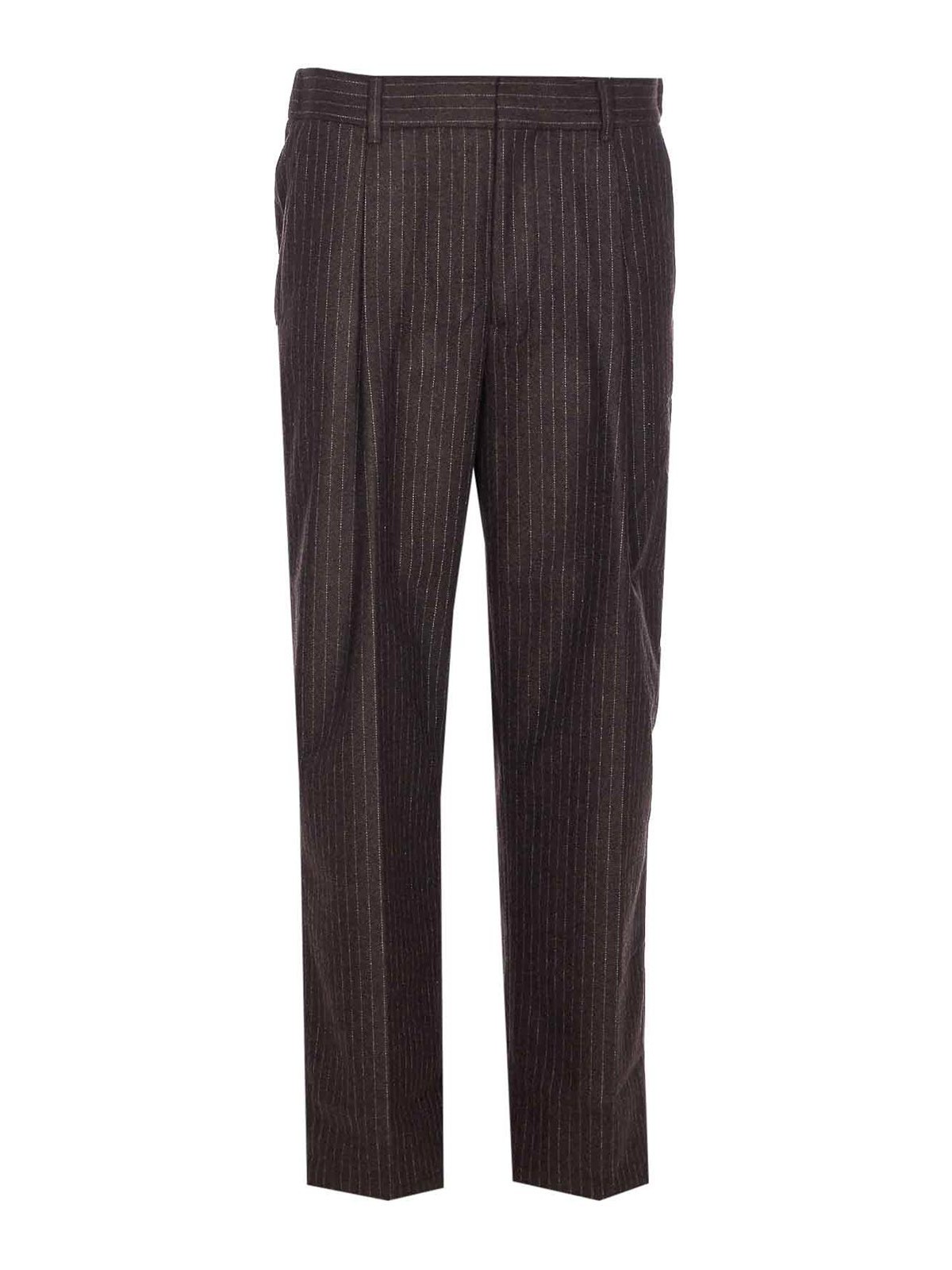 Pantalon Kay marron Nn.07, fermeture boutonnée, crochet et fermeture éclair, poches latérales, rayé, coupe décontractée