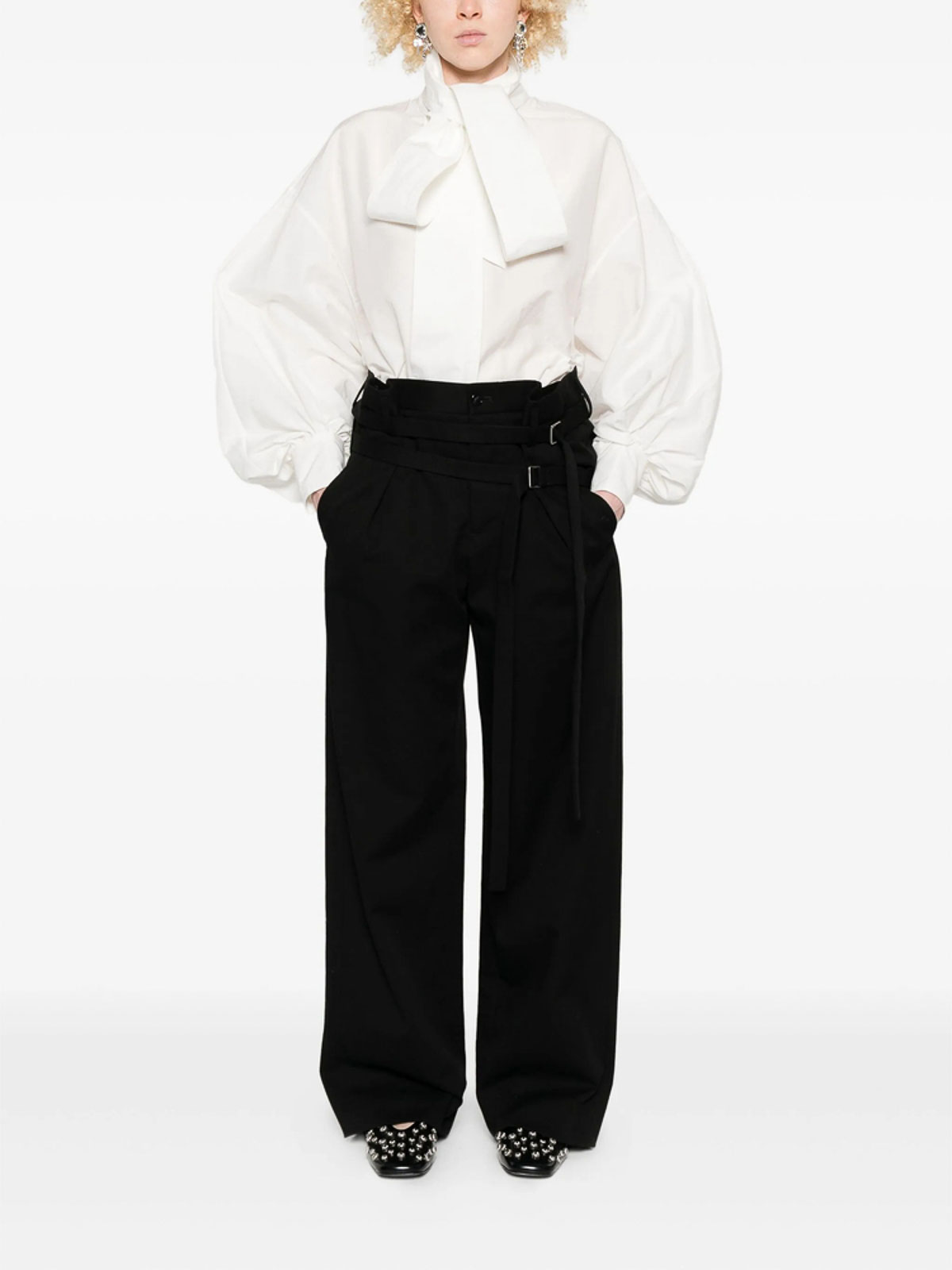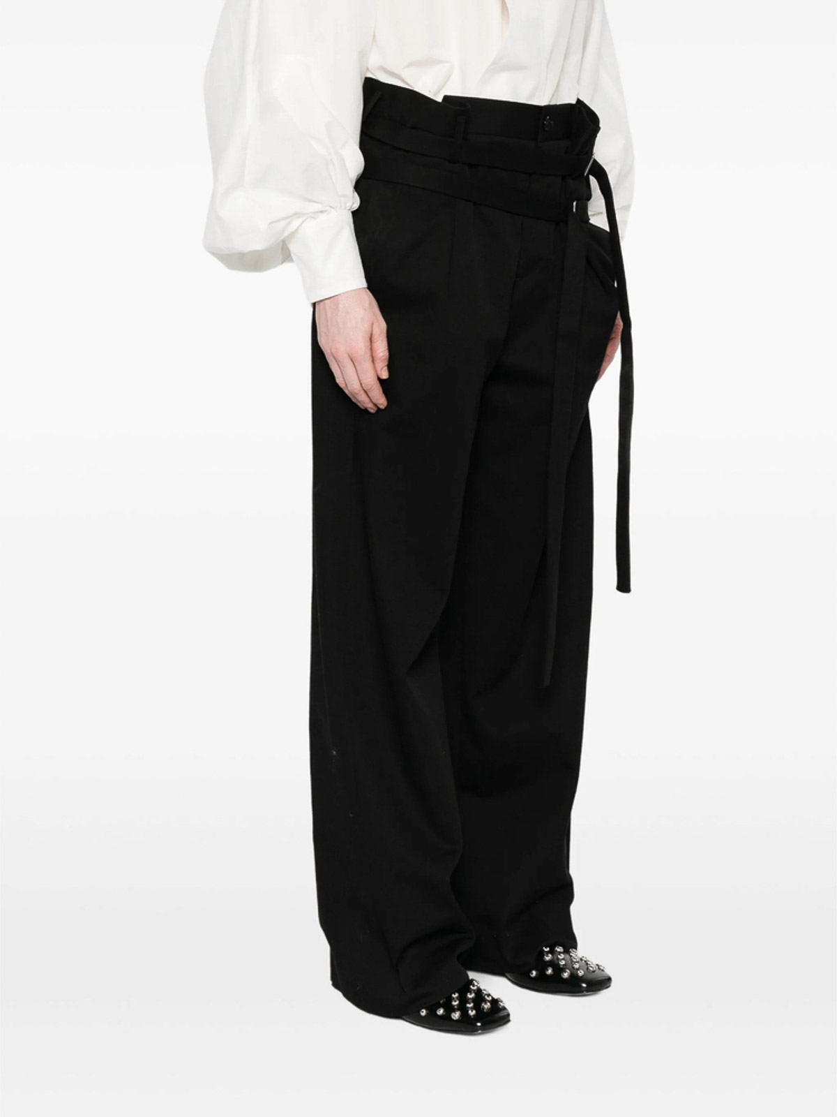 Taille ceinturée avec détails plissés noirs