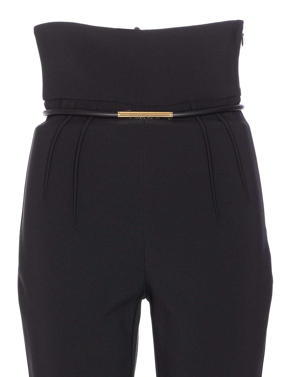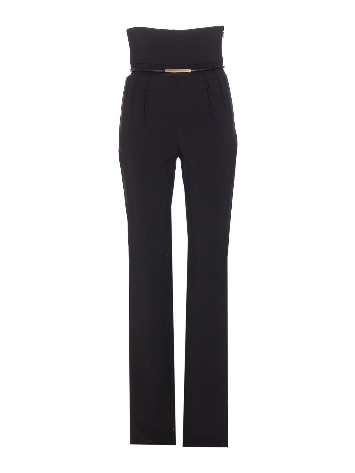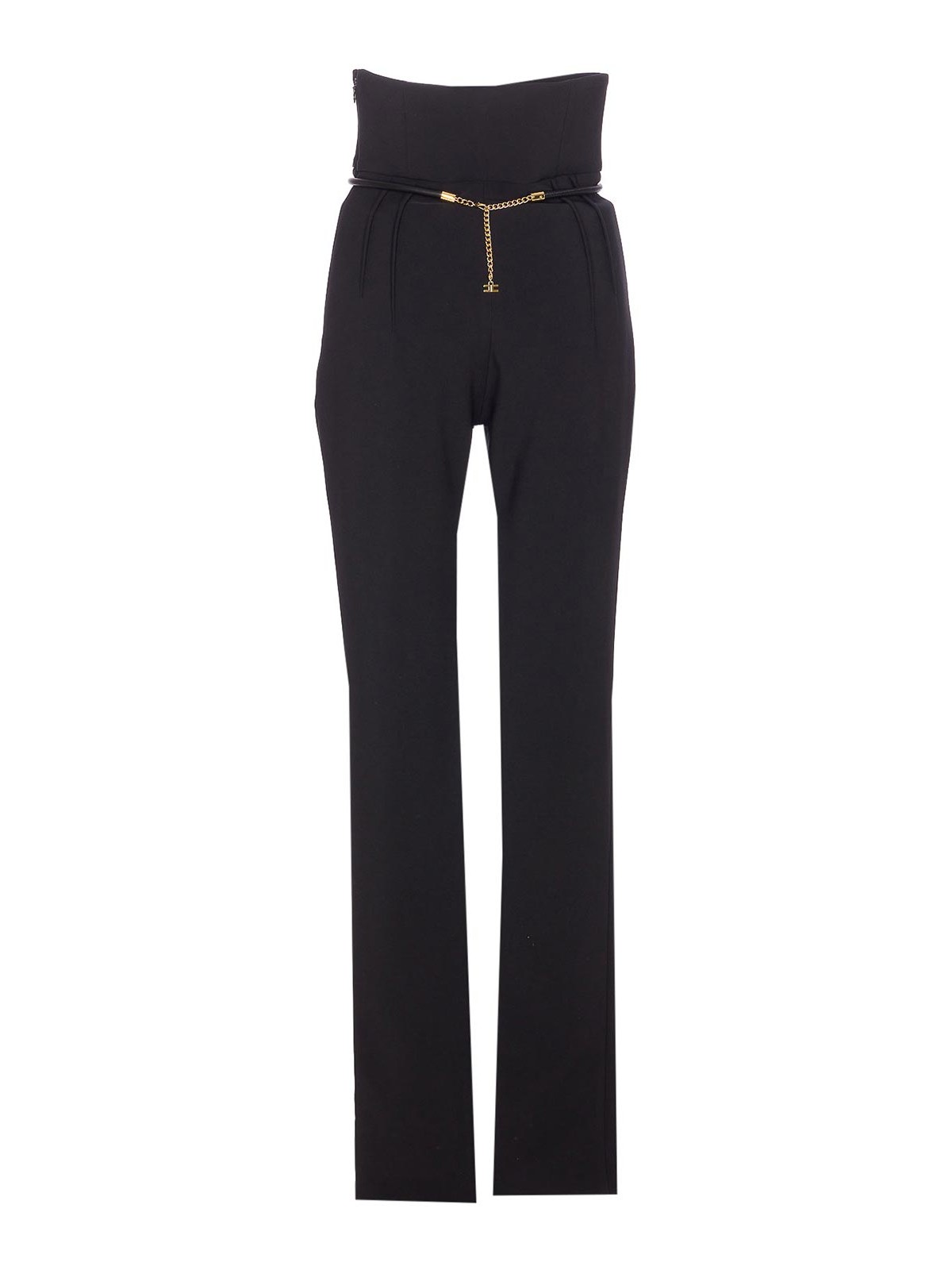 Pantalon noir Elisabetta Franchi, fermeture éclair latérale, taille haute, ceinture à la taille, coupe moulante