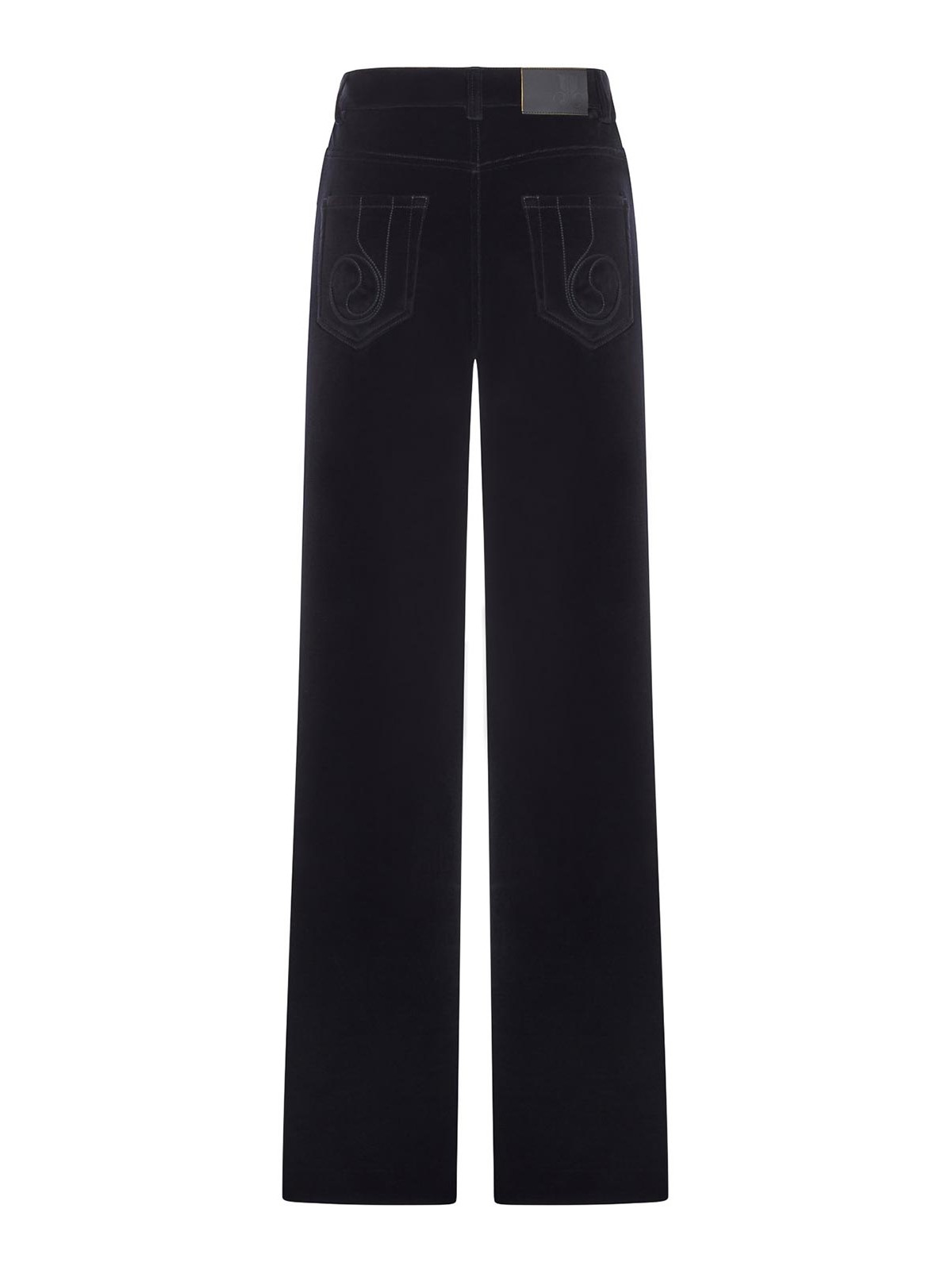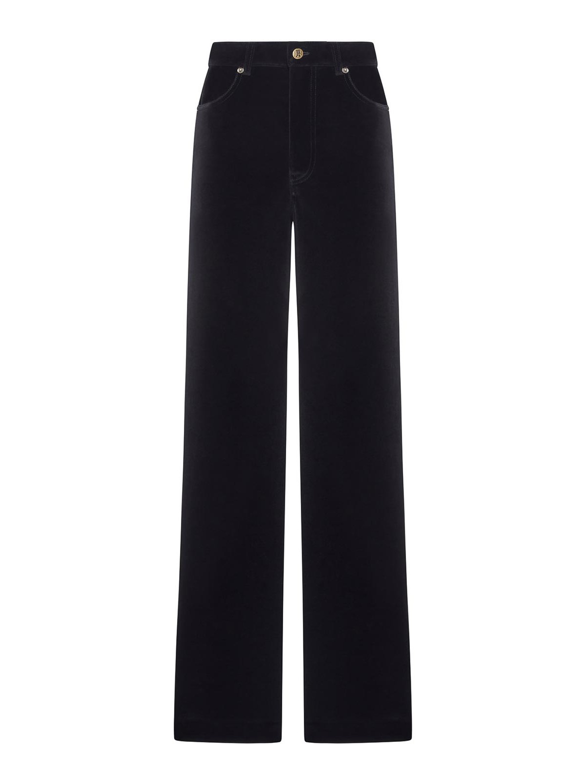 Fermeture éclair et bouton, passants de ceinture, deux poches avec rivets, deux poches arrière à rabat avec surpiqûres, jambe large, - couleur noire