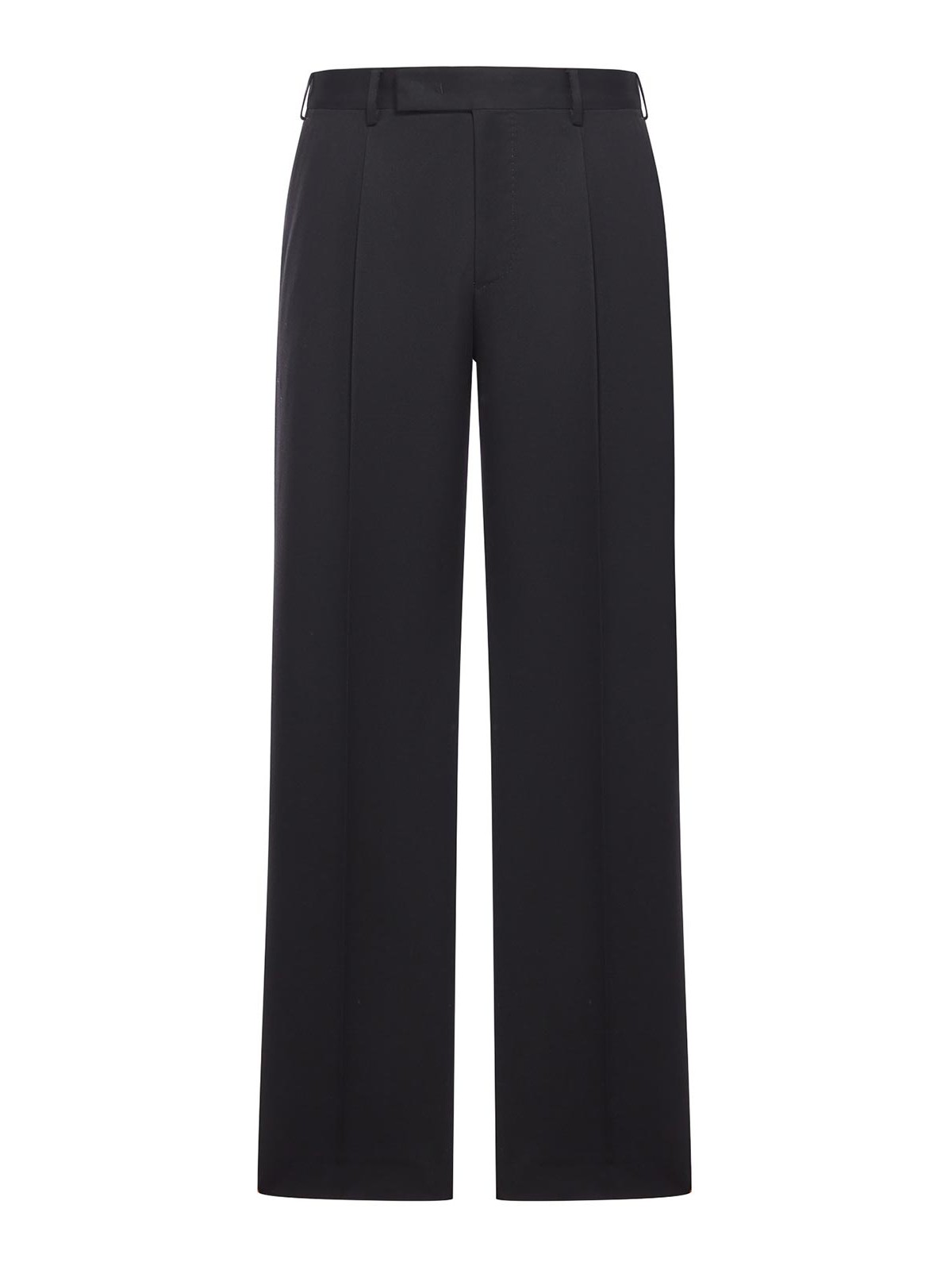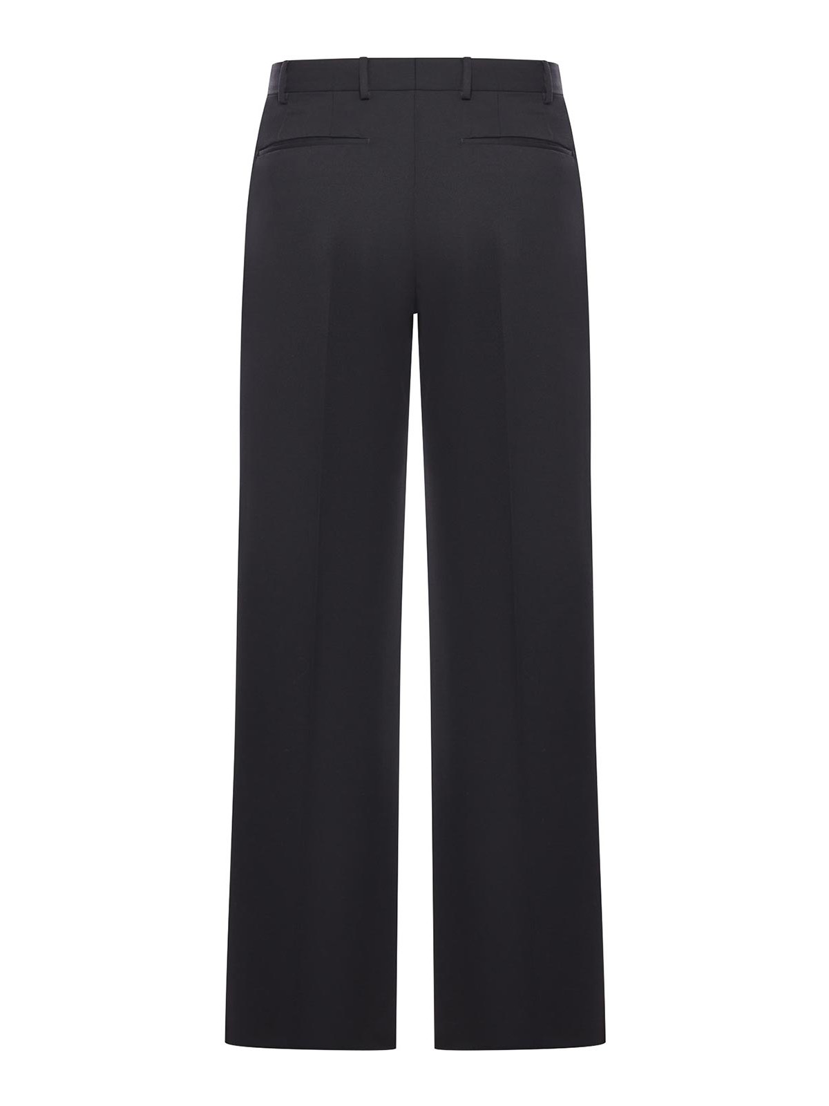 Passants de ceinture à la taille, fermeture éclair et bouton, doubles plis, jambe large, deux poches incrustées en diagonale, deux poches arrière passepoilées, - couleur noire