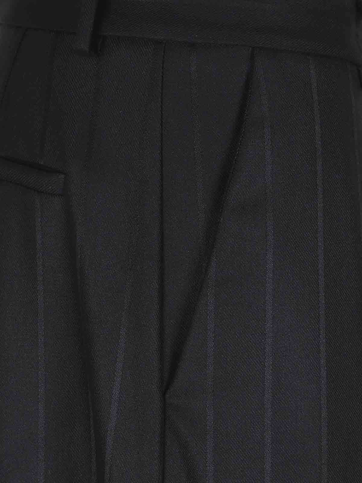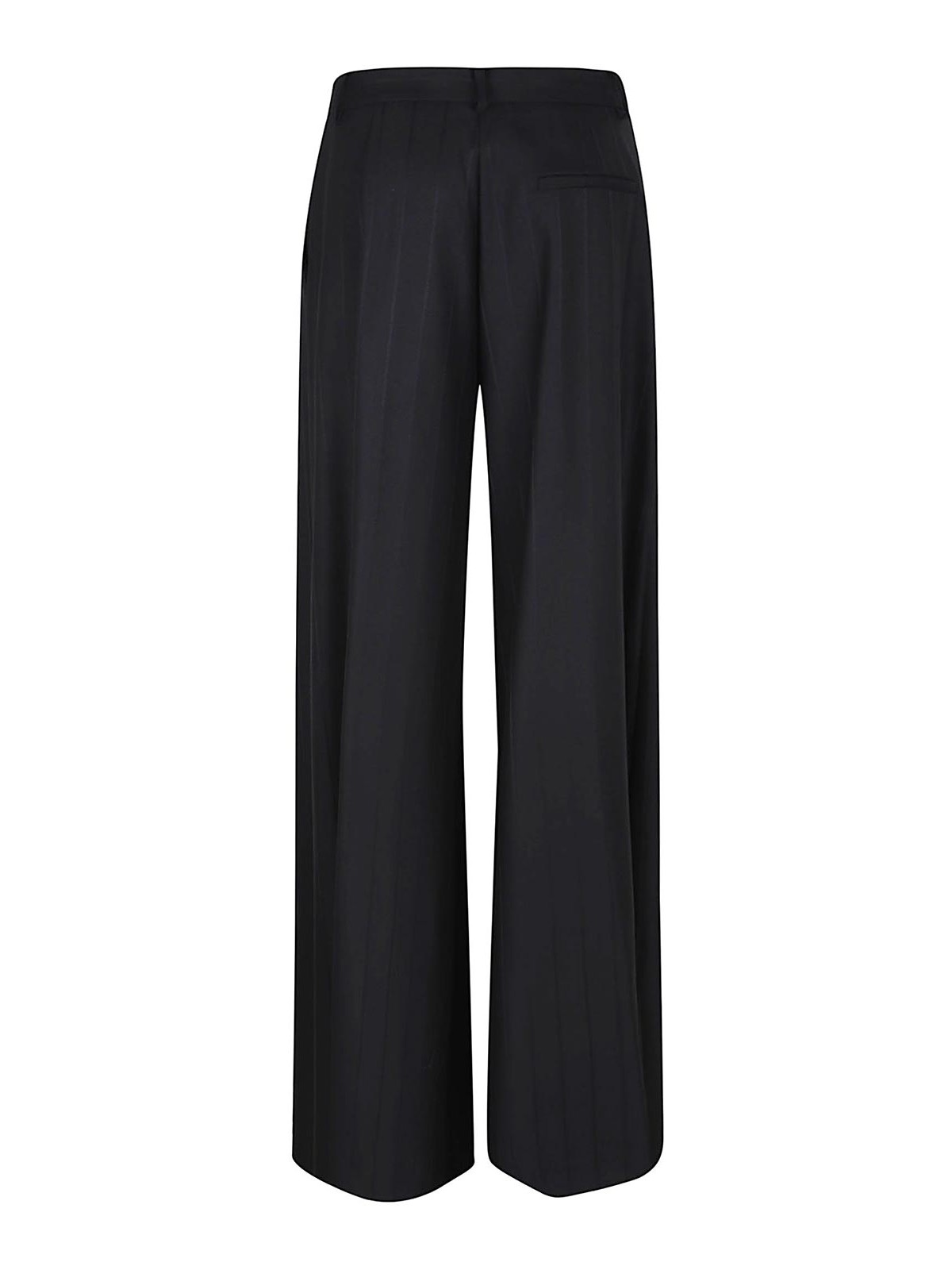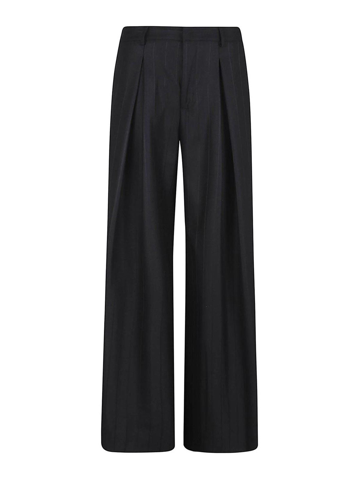 Pantalon Tara en jacquard à fines rayures d'Andaman, fermeture zippée, crochet et bouton, passants de ceinture, plis sur le devant qui s'évasent pour former une jambe très large au niveau de la cheville.