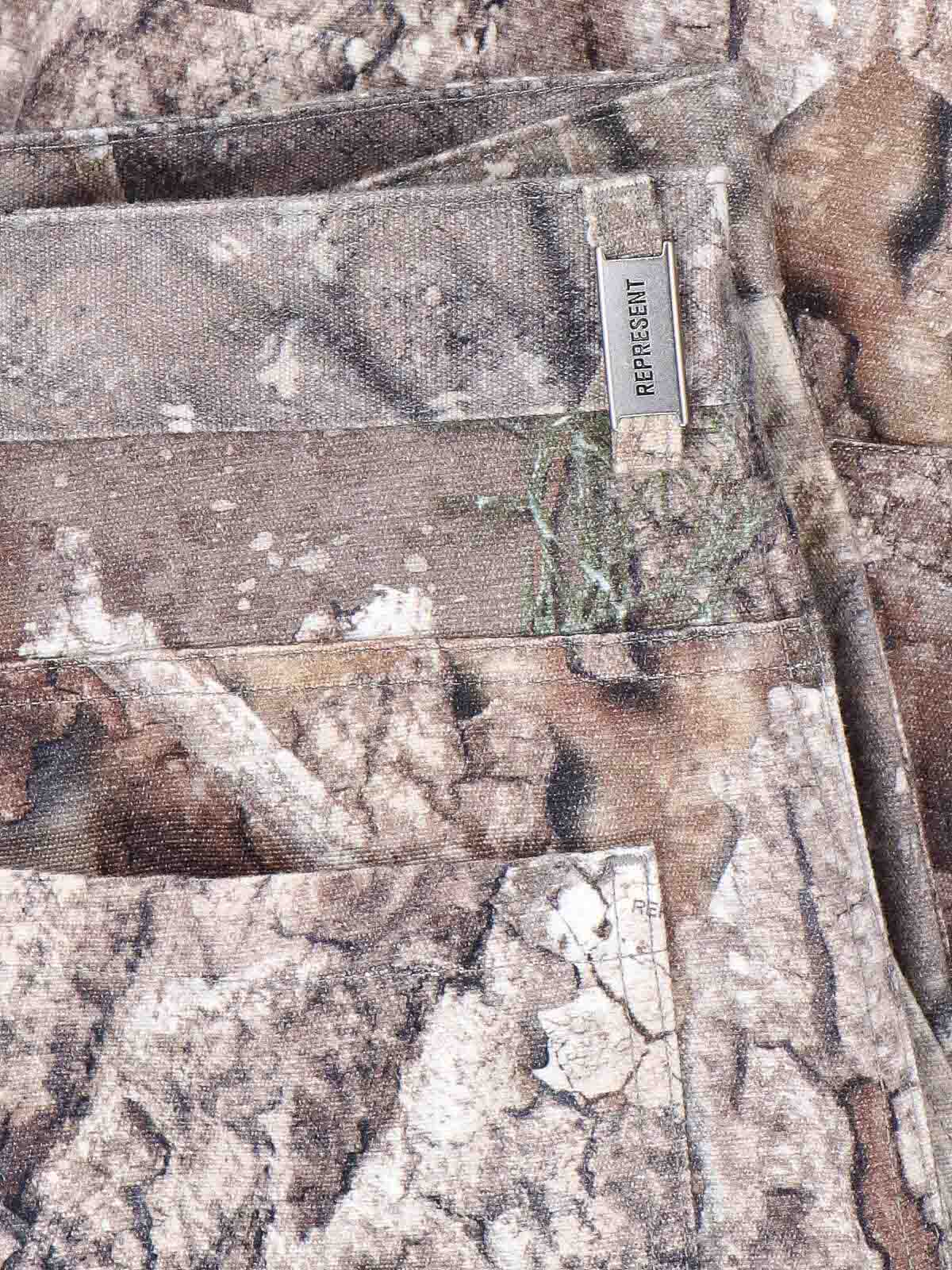 Pantalon représentant un véritable arbre camo, en coton multicolore, taille moyenne, passants de ceinture, fermeture boutonnée et zippée, logo contrastant sur l'ensemble, deux poches avant, deux poches cargo latérales, deux poches arrière, logo brodé contrastant, jambe droite.