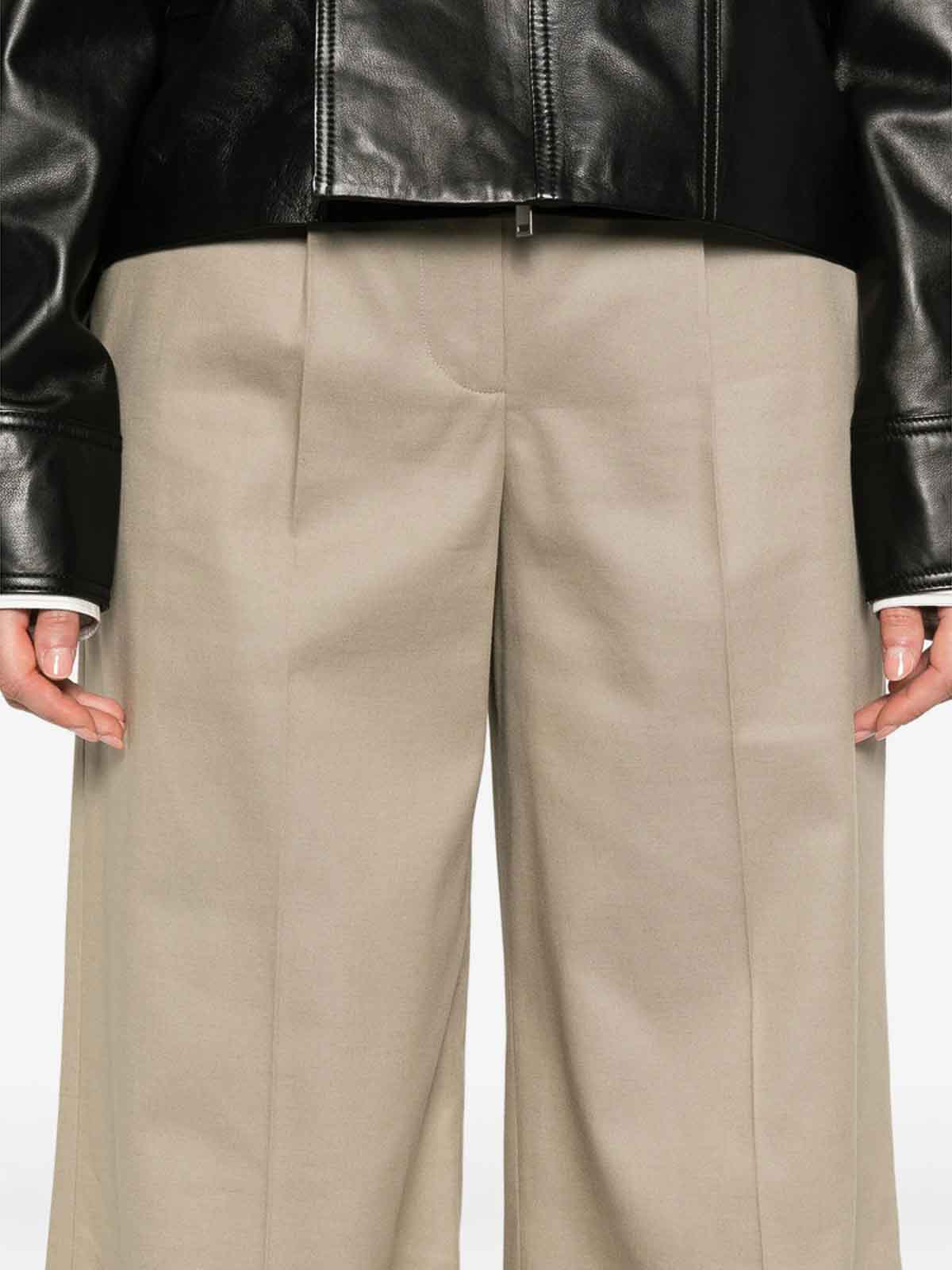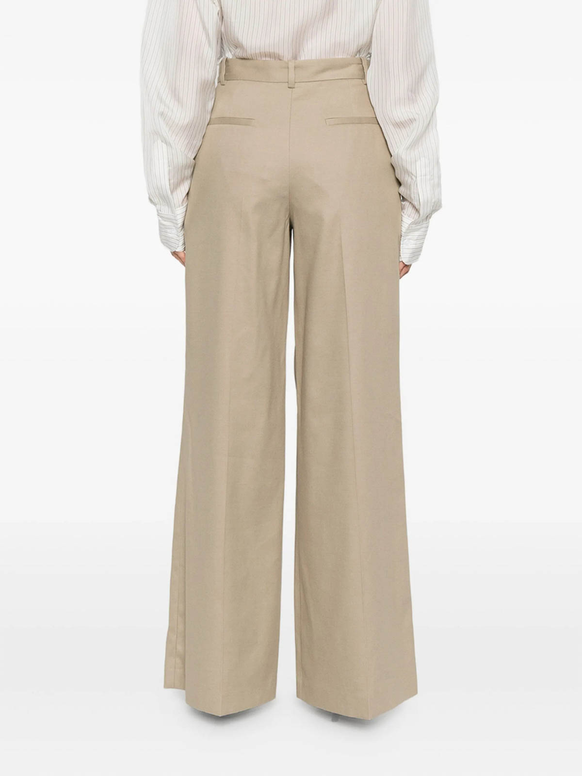 Taille haute, poches latérales, ourlet droit, détails en forme de fléchettes, beige taupe