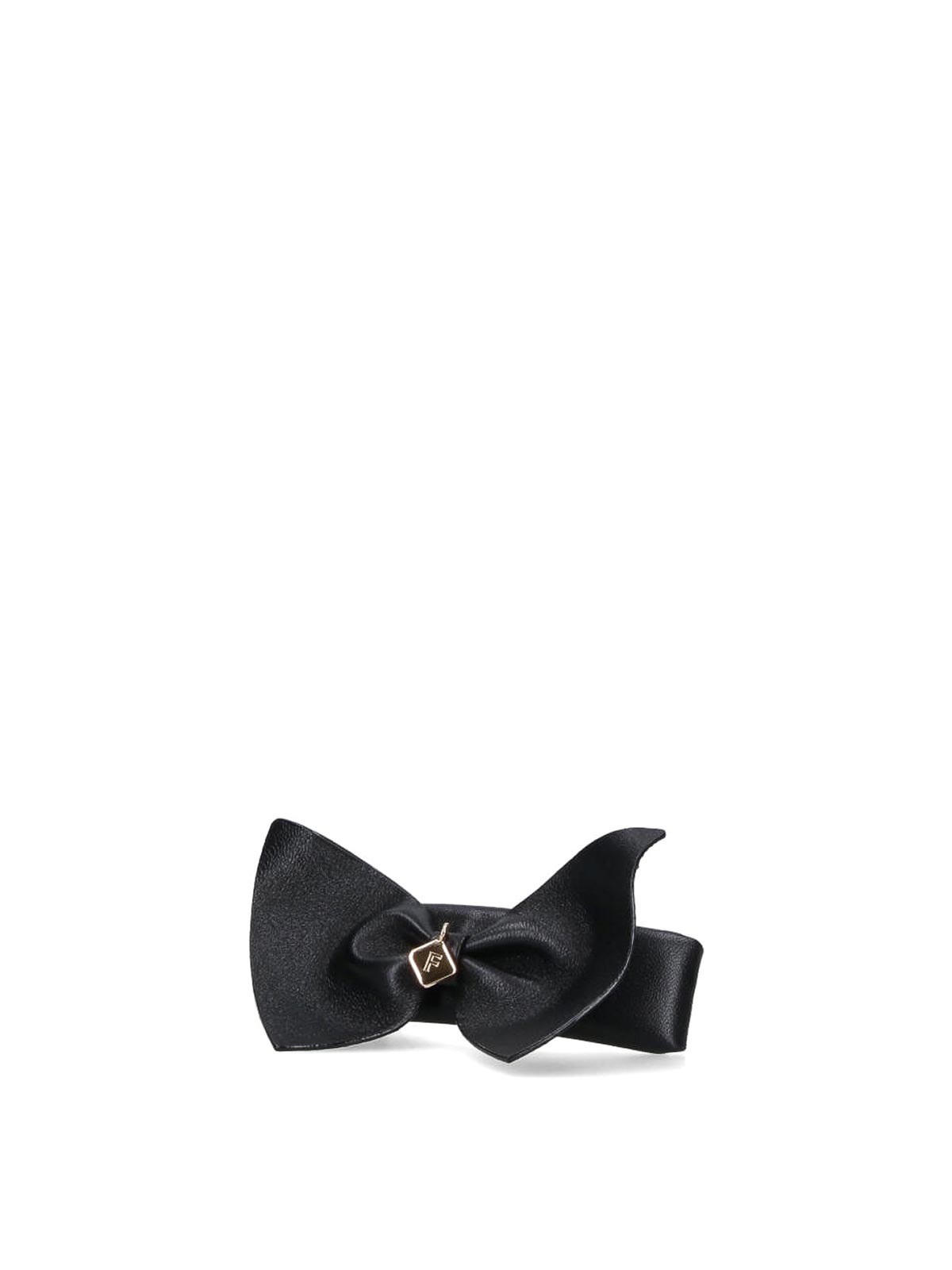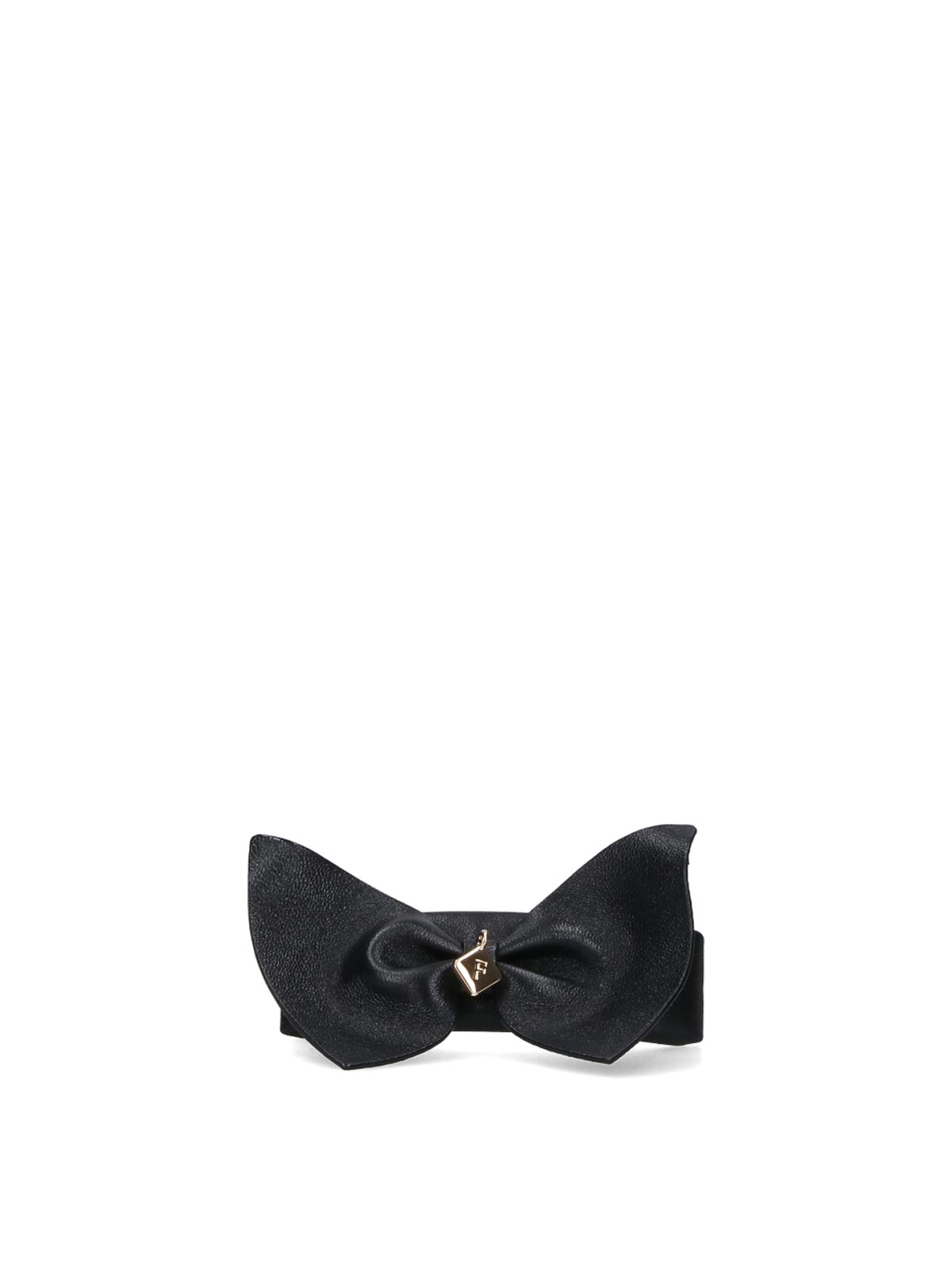 Pince à nœud Ferragamo - en cuir d'agneau noir, détails en métal doré, logo F gravé, fermeture à clip arrière.
