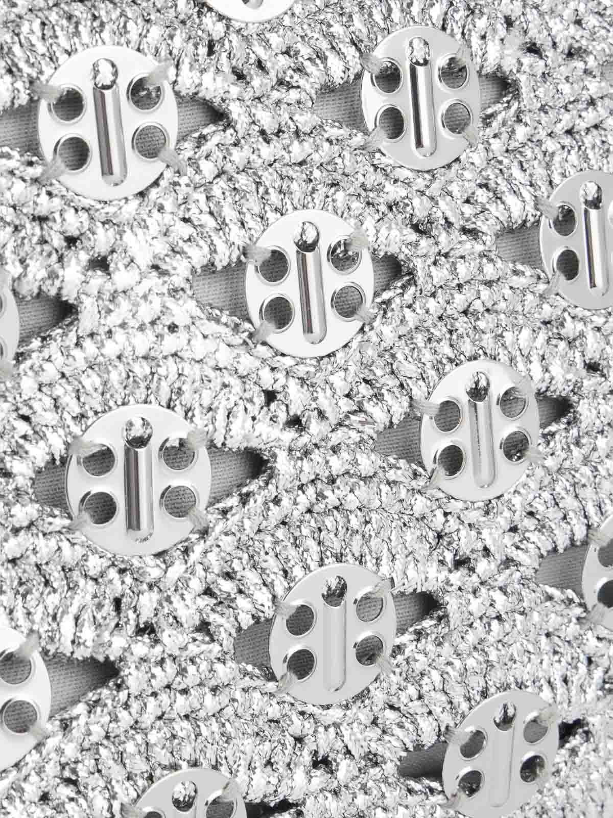 Pochette en raphia, couleur argentée, compartiment latéral zippé, fermeture à boucle, design rectangulaire