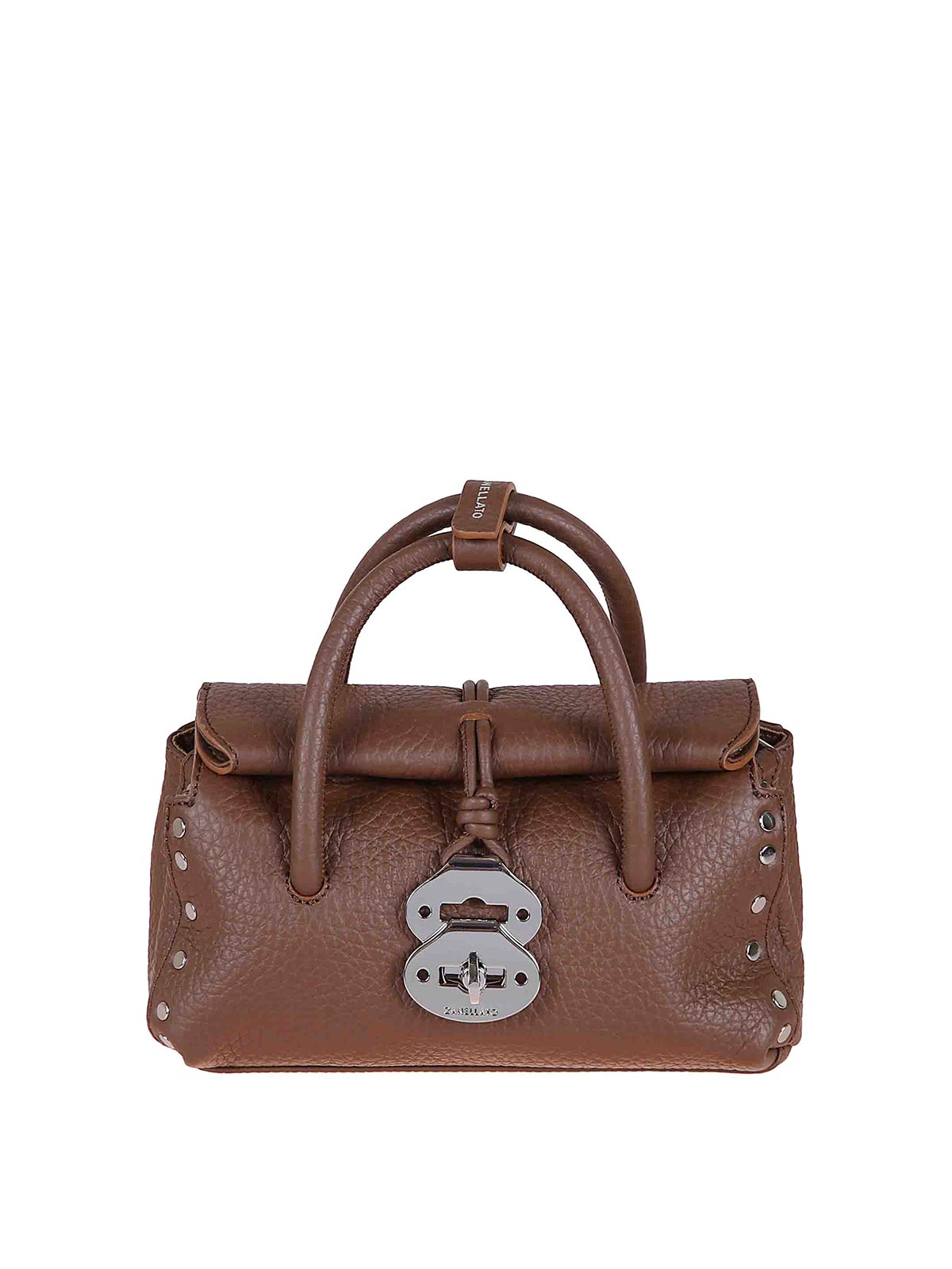 Sac Zeno Twist Lock en cuir pilé et double boutons aimantés, poignée ajustable et amovible, deux compartiments intérieurs