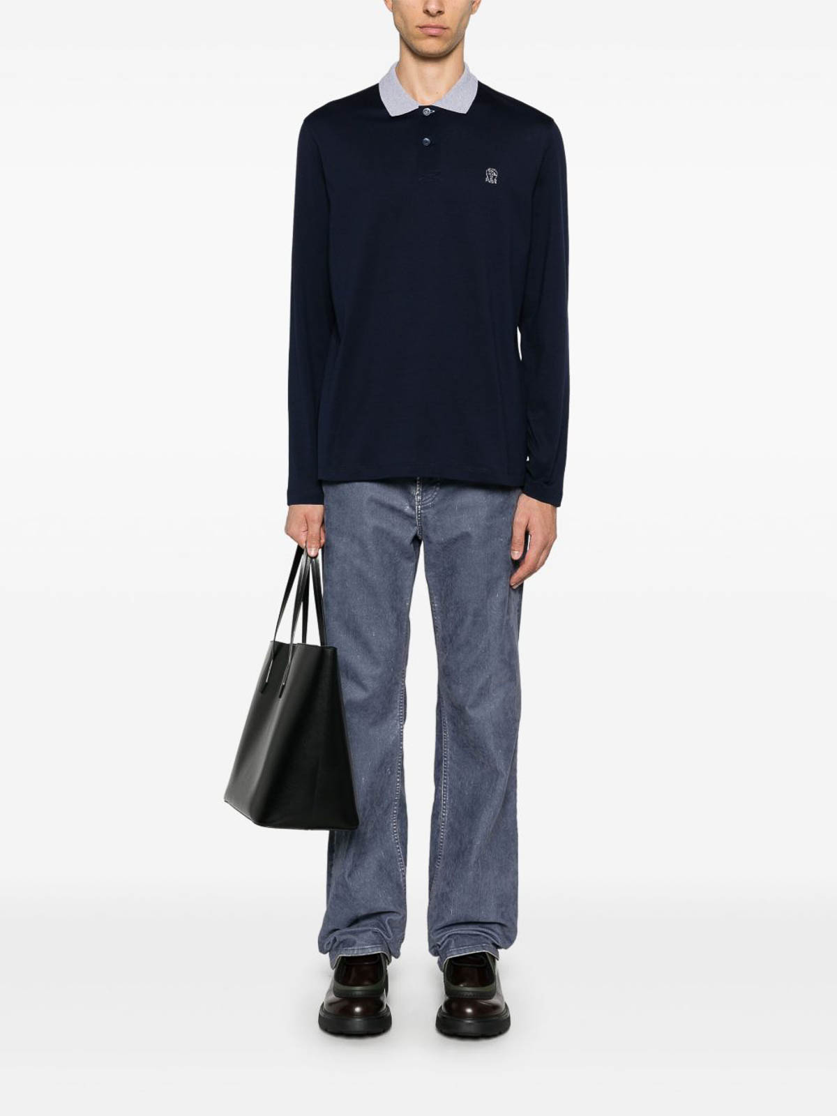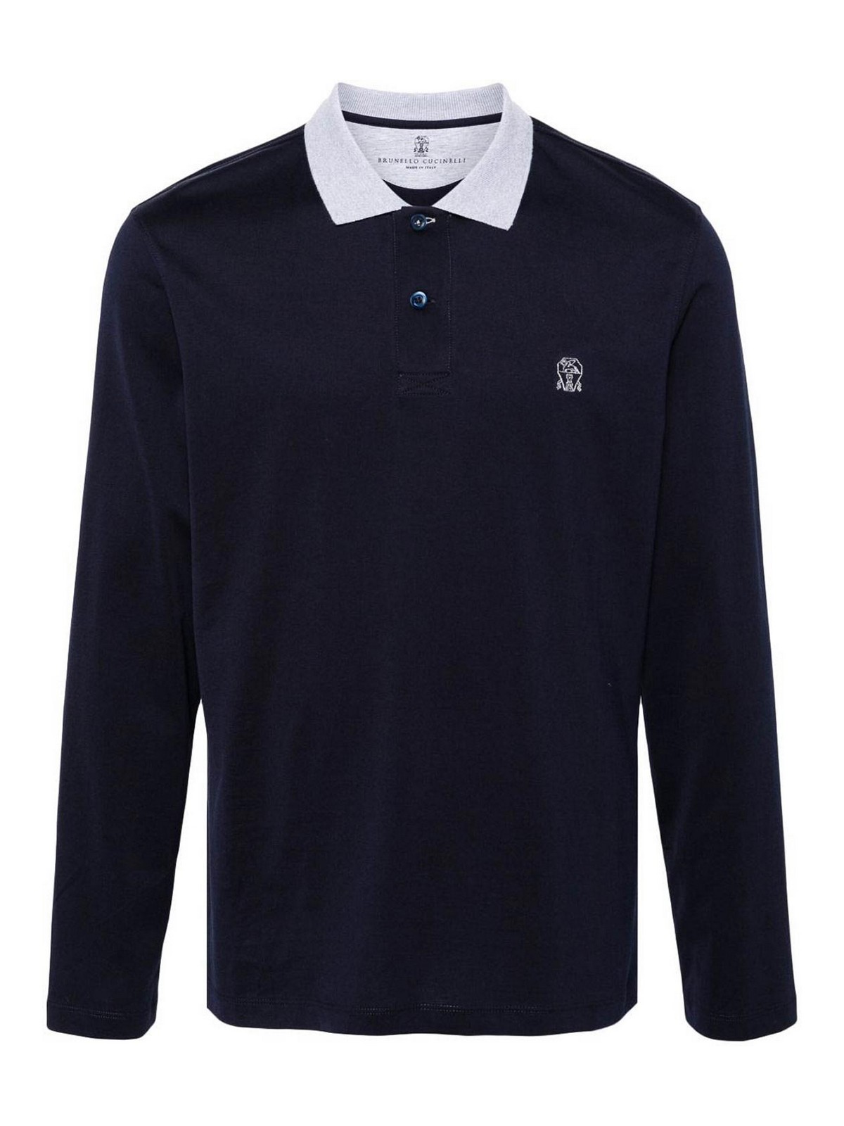 Polo long logo bleu marine de Brunello Cucinelli avec col, Brunello Cucinelli, polo, manches longues, bleu marine, col, logo