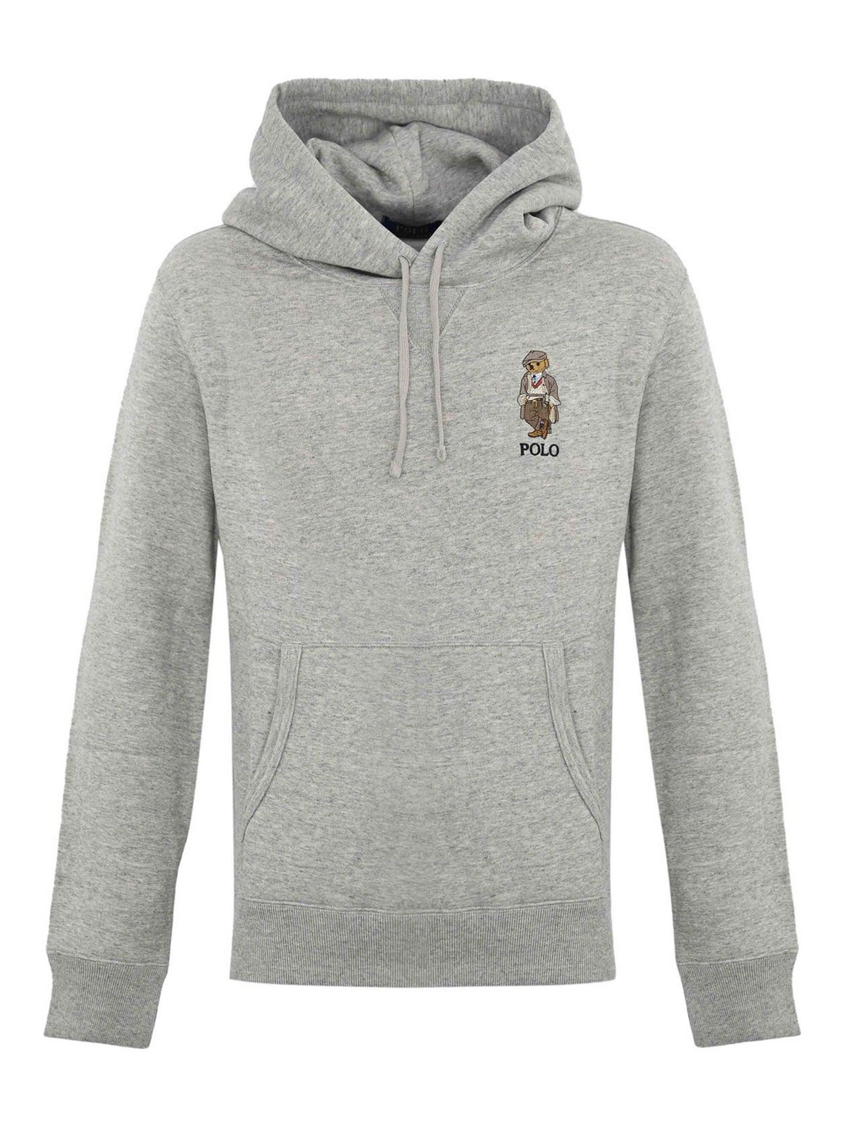 Sweat-shirt en coton mélangé côtelé à manches longues, capuche avec cordon de serrage ajustable, logo polo bear sur la poitrine gauche, poche sur
