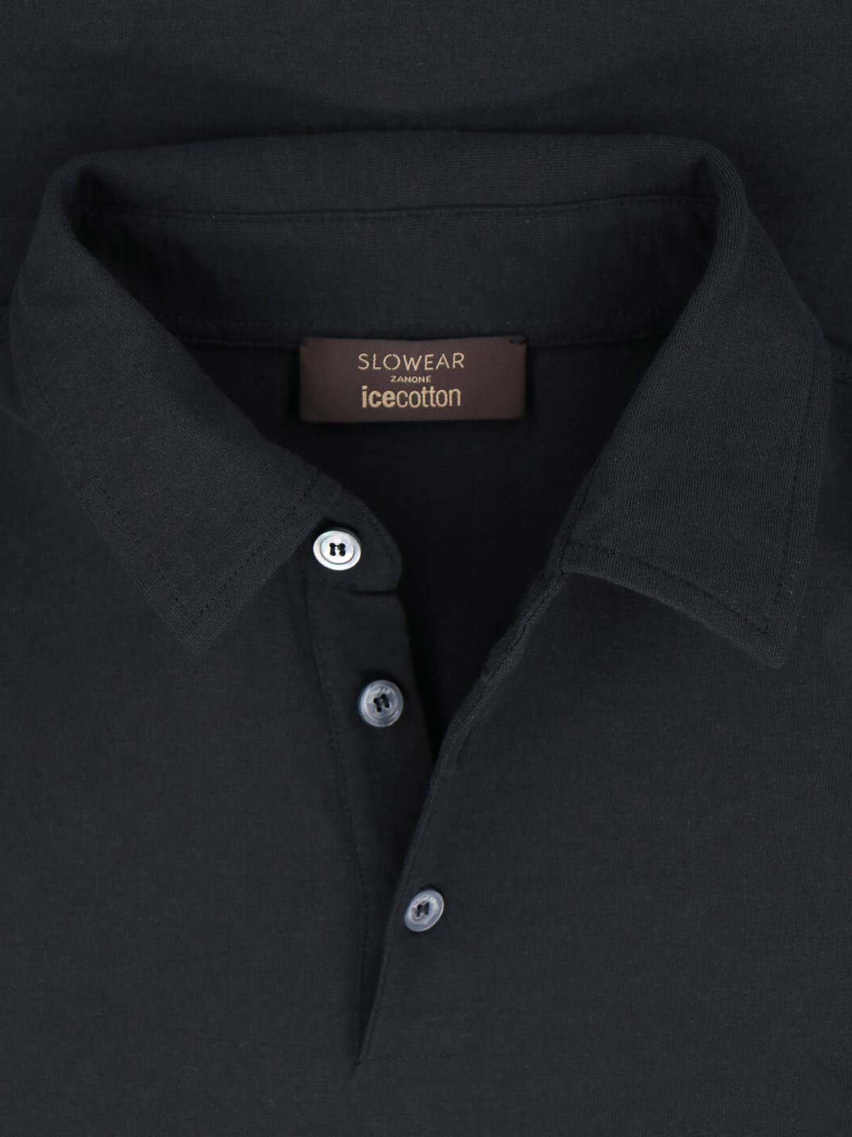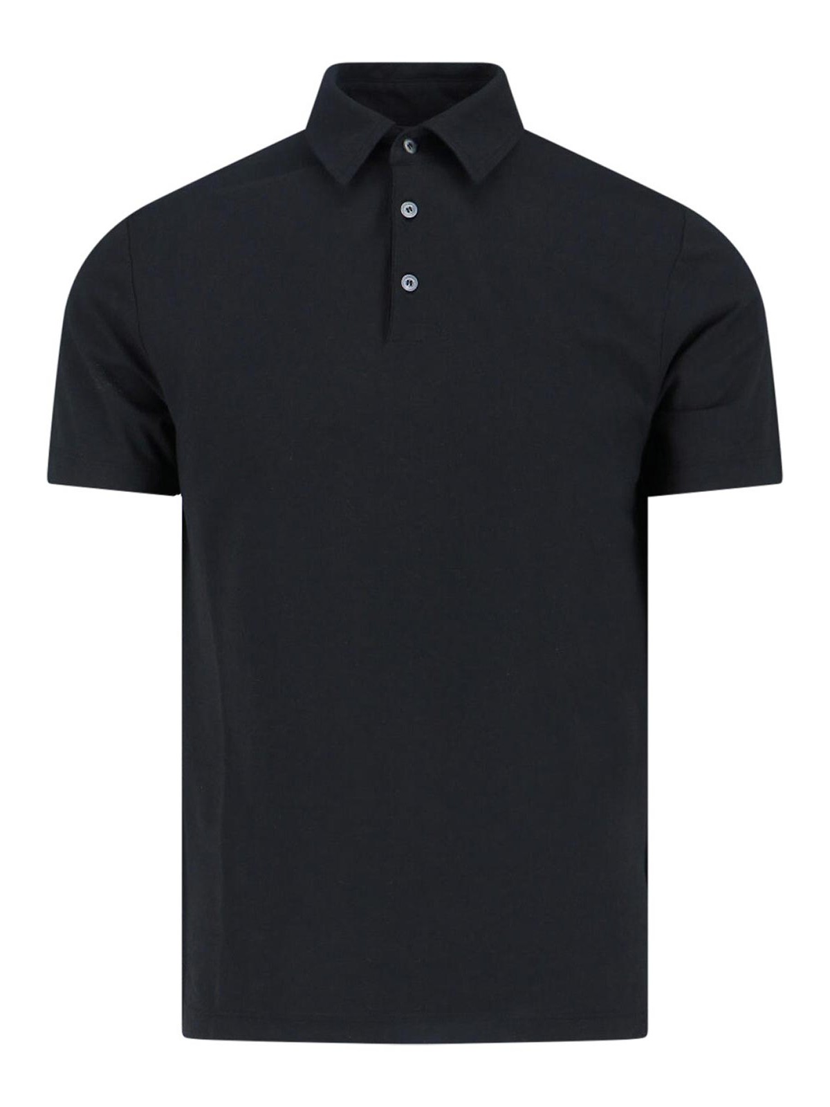 Polo en coton Zanone, noir, col classique, fermeture boutonnée, manches courtes, ourlet droit.