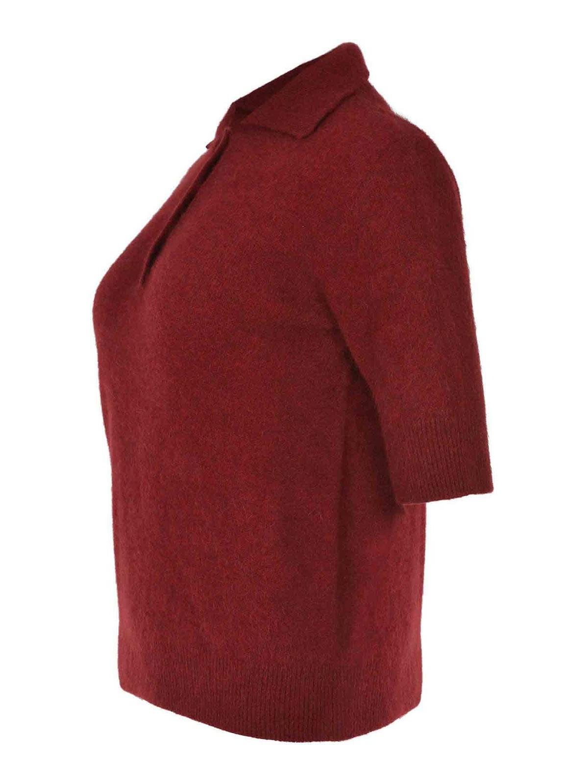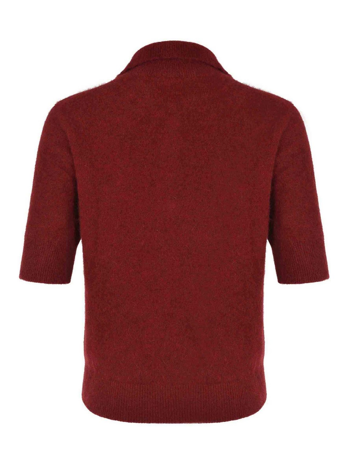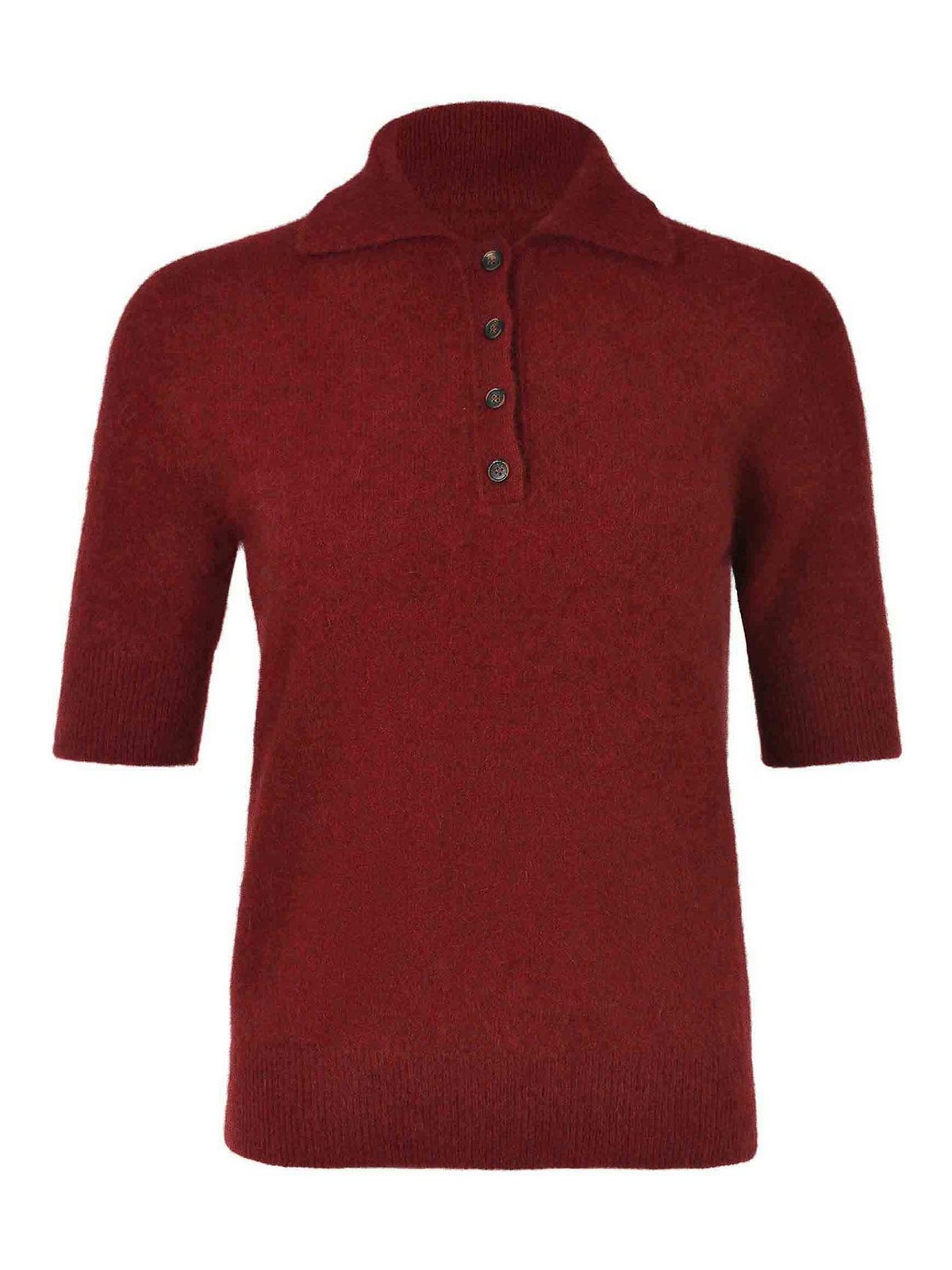 Polo Vanis en fourrure de raton laveur rouge, col classique, boutons de poitrine, manches courtes, poignets et ourlet côtelés, 100 % raton laveur fabriqué en Italie
