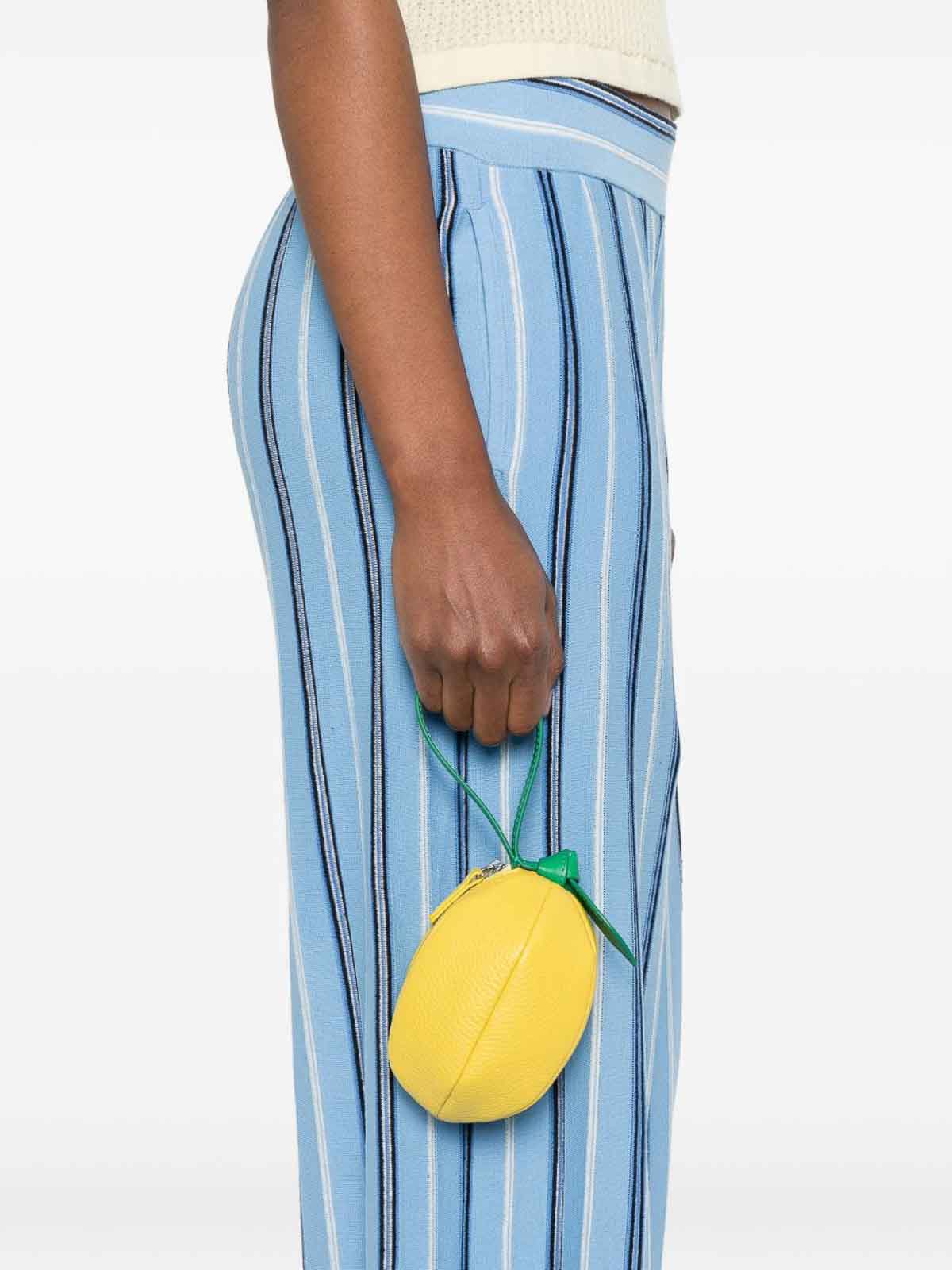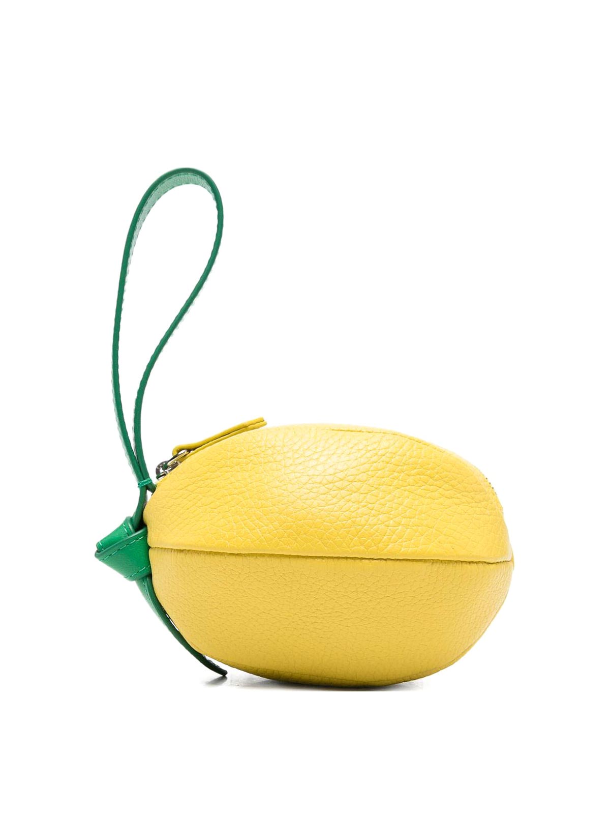 Poignet zippé en texture grainée jaune, détail feuille verte, cette pièce est livrée avec un sac à poussière protecteur.