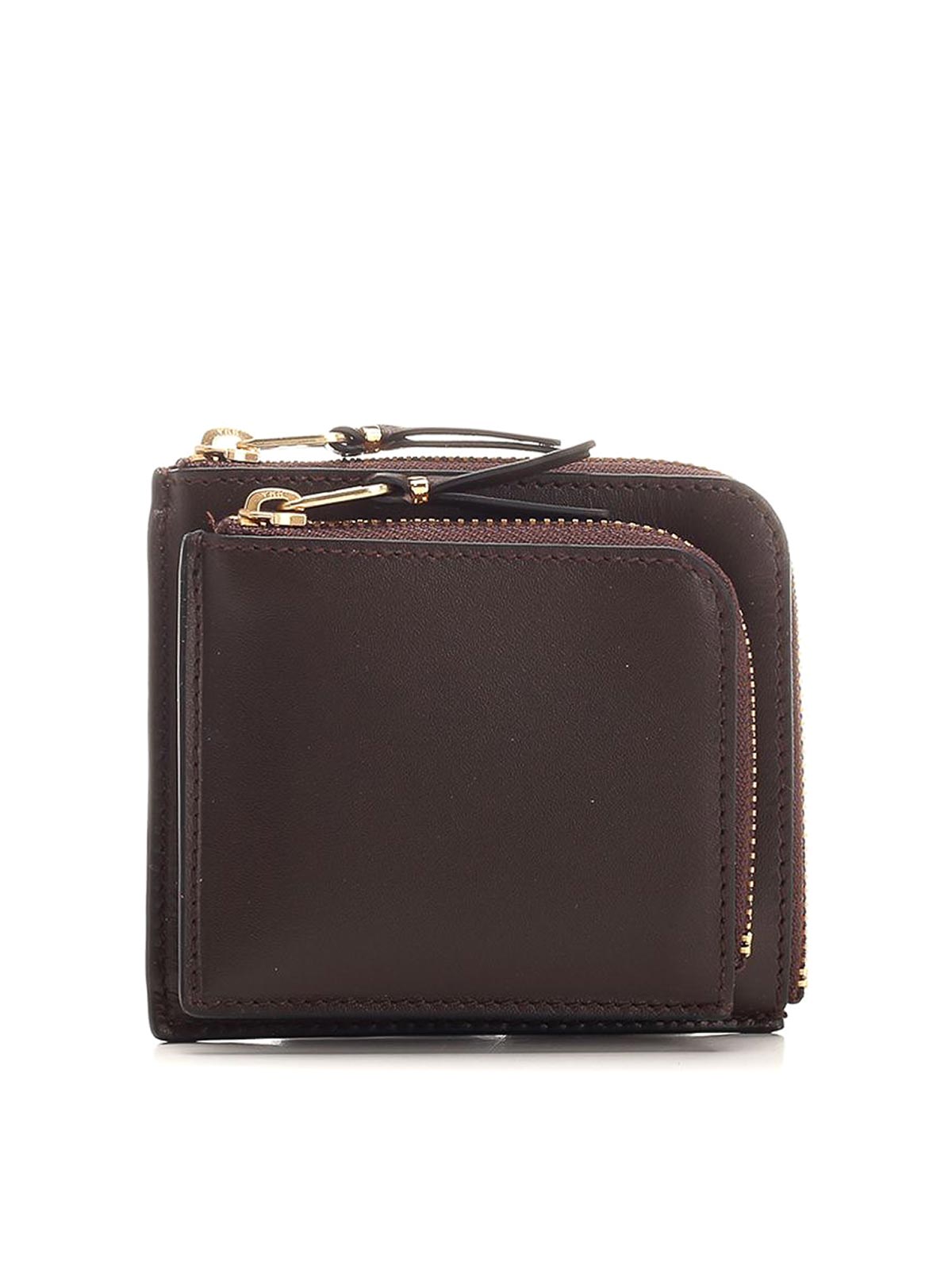 Porte-monnaie à double fermeture éclair en cuir marron avec portefeuille en cuir « Comme des Garçons ».