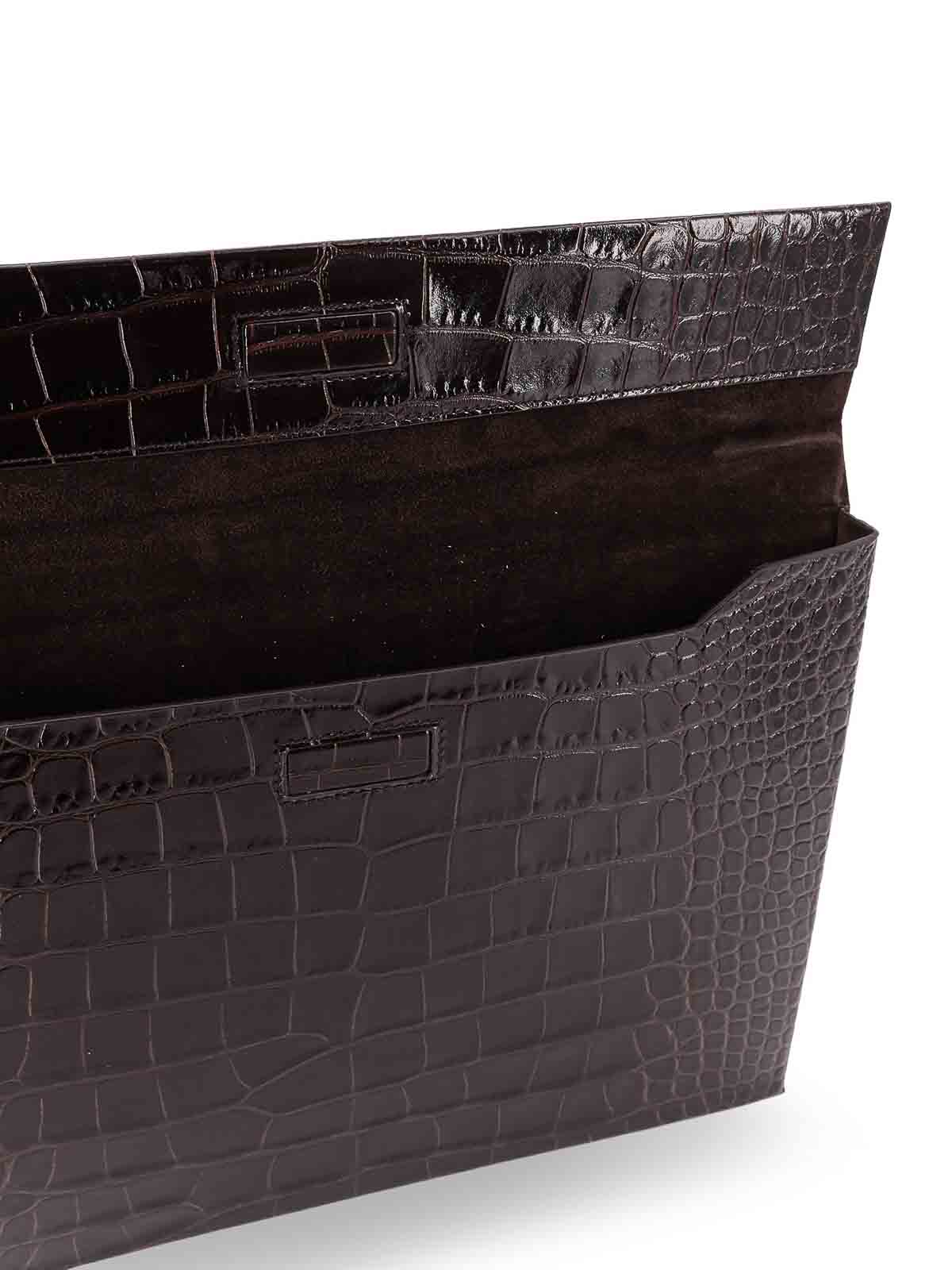 Fermeture avec rabat et bouton magnétique, logo gravé sur le devant. Compartiment unique fabriqué en Italie. Doublure en cuir : daim L : 33,5 cm x H : 24,5 cm x P : 3 cm