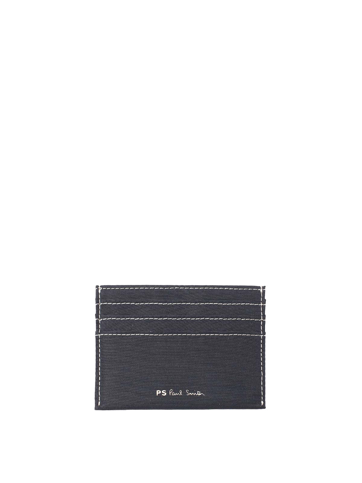 Portefeuille pour cartes de crédit Happy en noir Portefeuille pour cartes de crédit en tissu technique orné du logo caoutchouté emblématique de Paul Smith, poche souriante sur cinq emplacements pour cartes, coutures contrastantes, arrière, logo PS Paul Smith caoutchouté, couleur noir (l h x l x h p h p pouces)