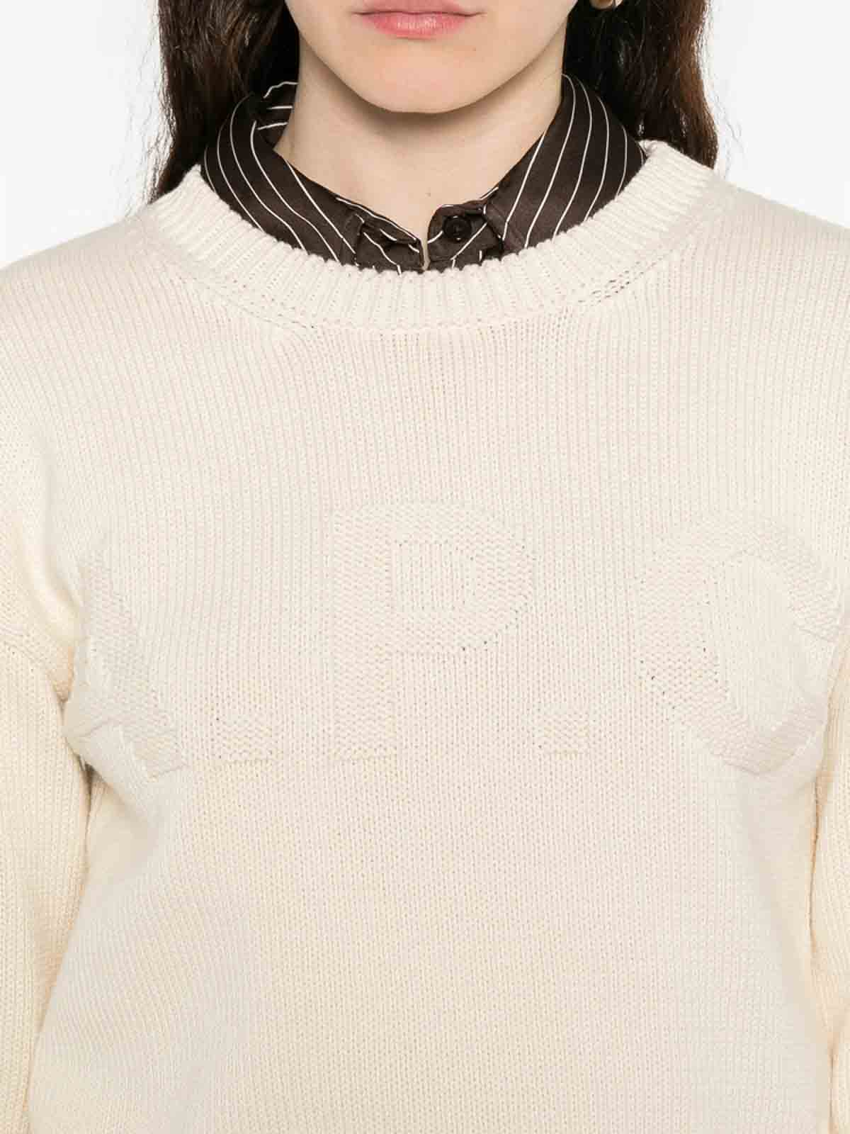 Col rond à logo beige ton sur ton, manches longues, ourlet droit en tricot côtelé