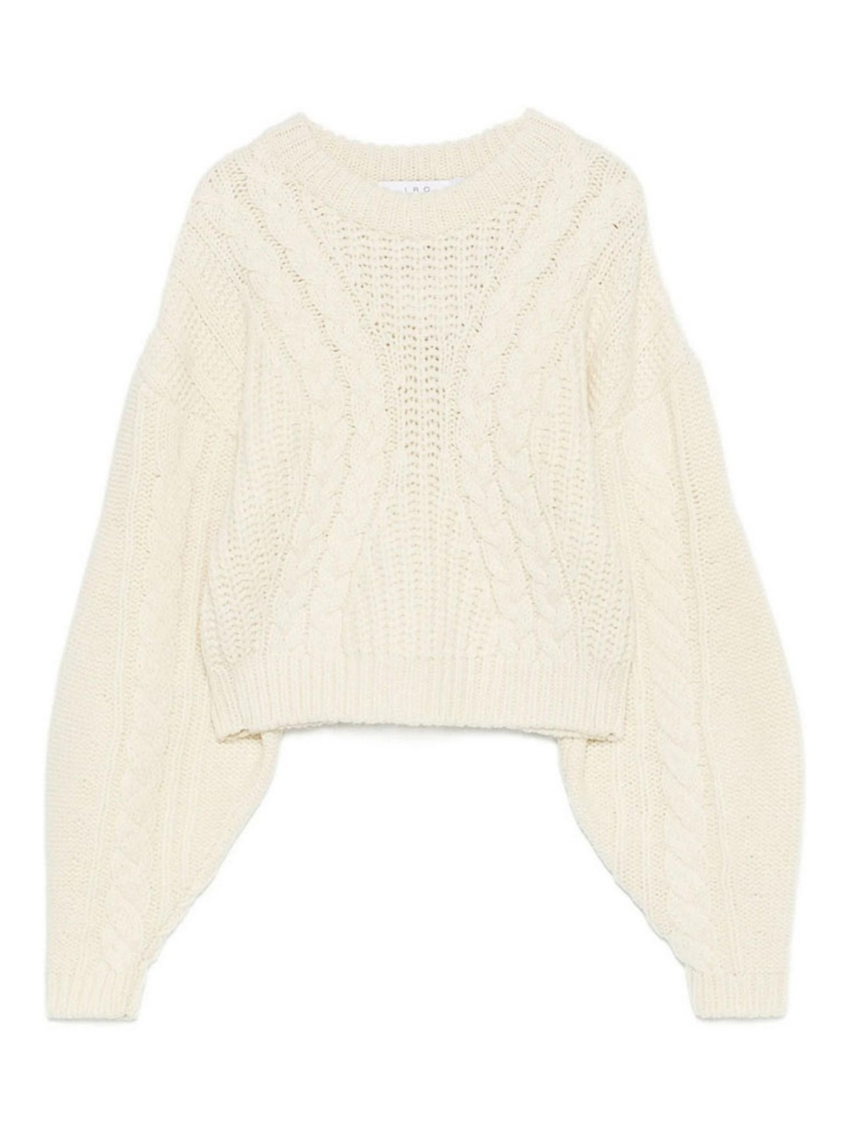 Col rond en maille torsadée beige, manches longues, poignets et ourlet côtelés