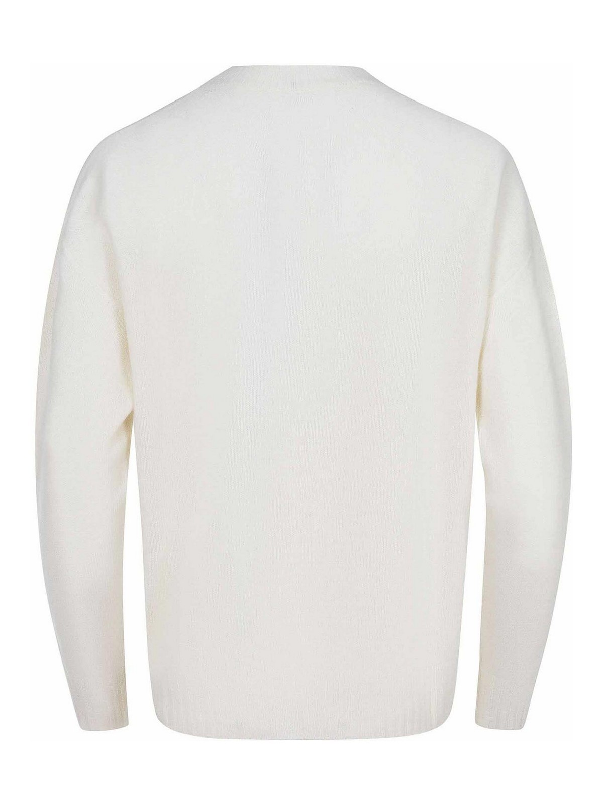 Pull Solotre en mélange de laine et de cachemire de couleur crème. col côtelé. manches longues avec poignets côtelés. ourlet côtelé. 55 % laine, 45 % cachemire. fabriqué en Italie