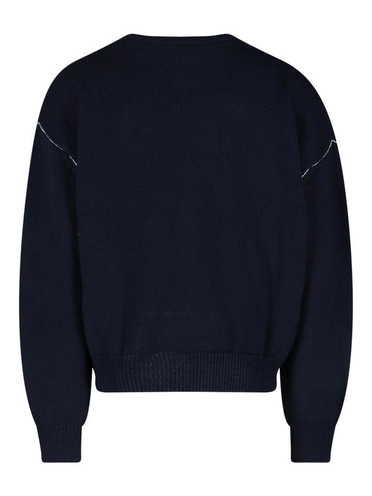 Pull à logo A.p.C. en laine mélangée bleue, tricoté, col rond, manches longues, finitions côtelées, logo incrusté sur le devant, ourlet droit.