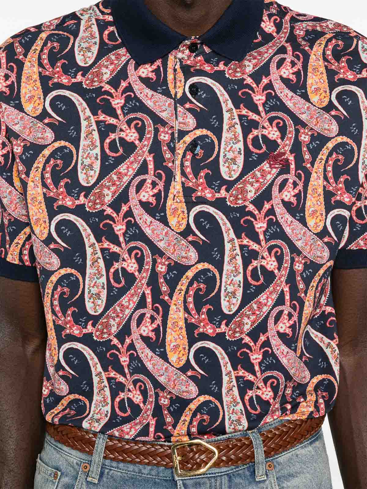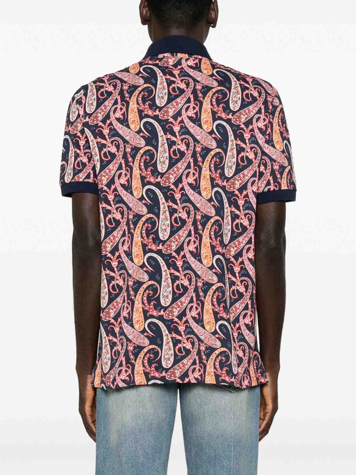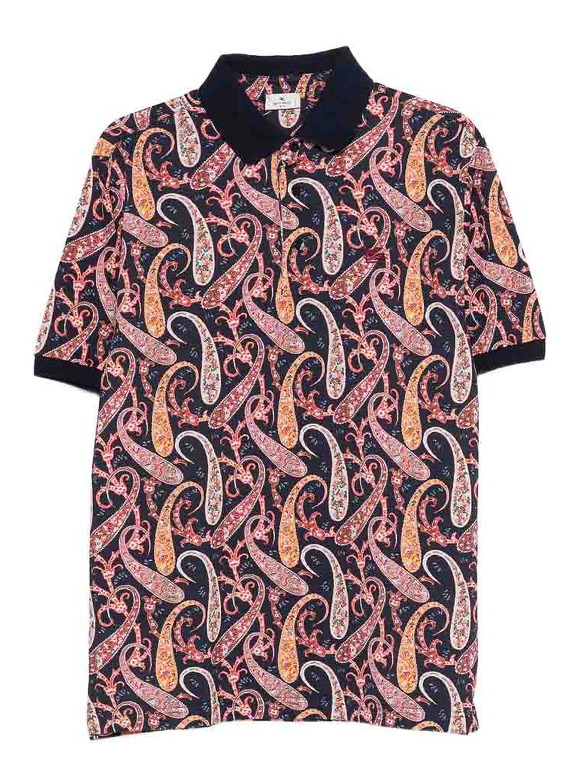 Col polo à manches courtes à imprimé cachemire bleu marine/multicolore