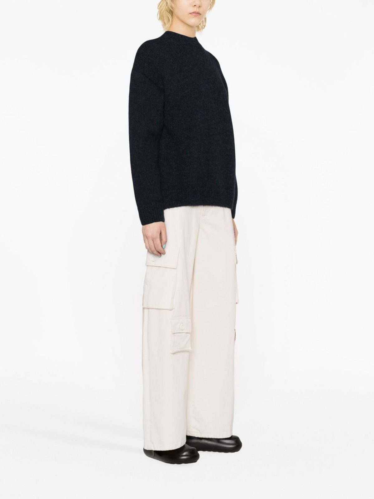 Pull à pavane La maille de Jacquemus orné de laine d'alpaga bleu marine, de laine mérinos mélangée, de construction tricotée, logo en maille intarsia, col montant, manches longues et poignets et ourlet côtelés