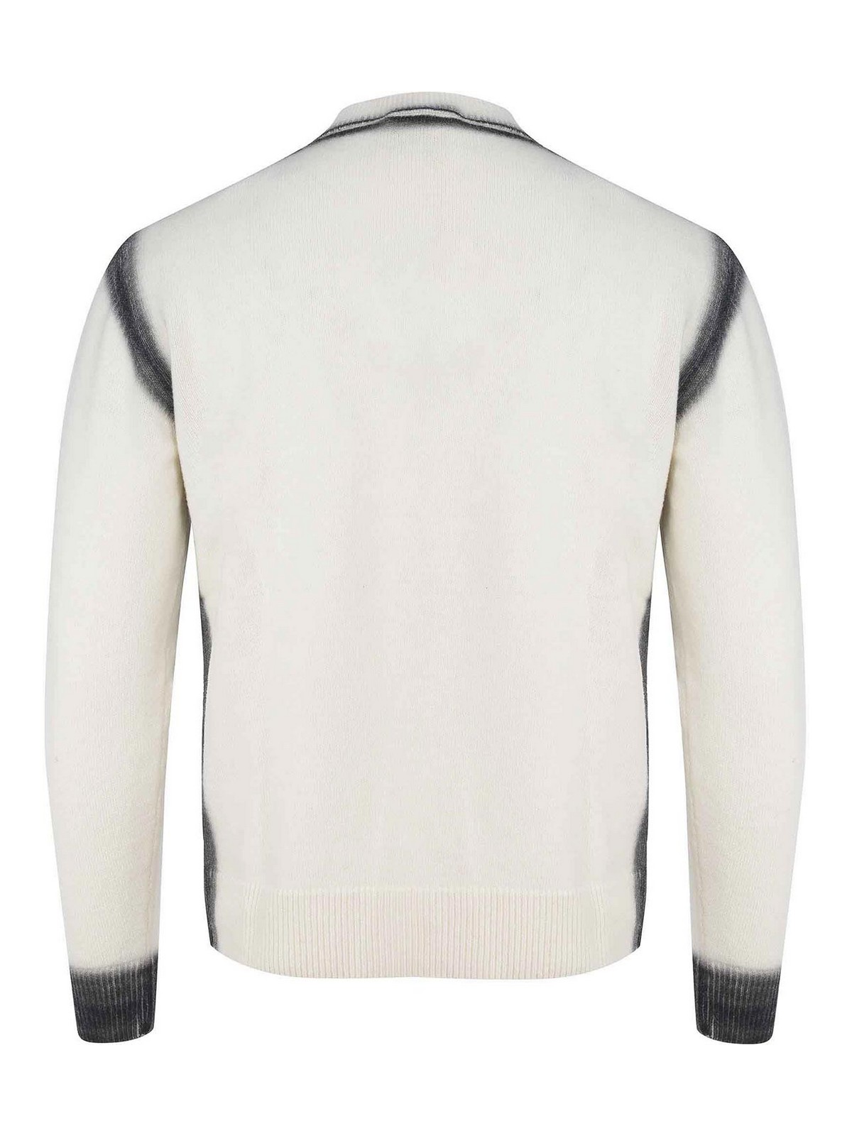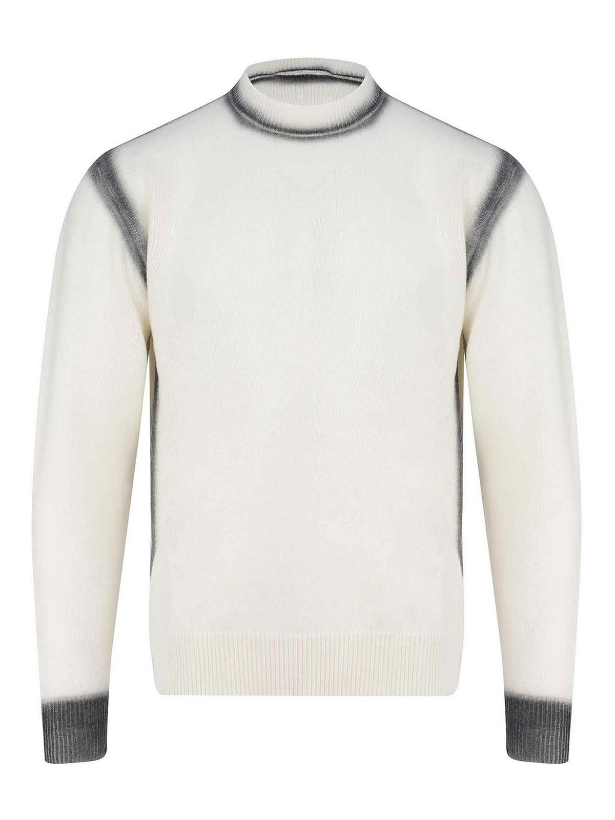 Pull Atomo Factory en laine mélangée de couleur crème, col rond côtelé, manches longues, finitions contrastées à effet dégradé, poignets et ourlet côtelés, 80 % laine, 20 % polyamide