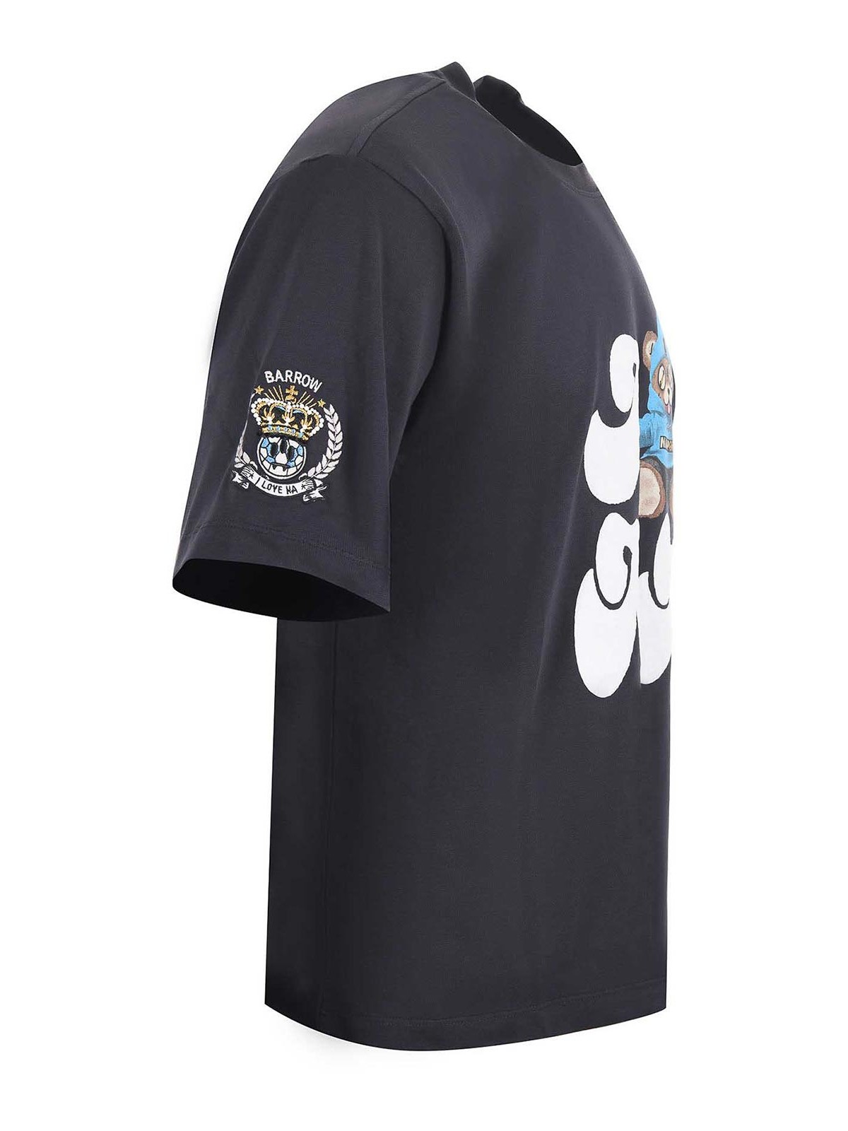 T-shirt en coton Barrow. Col rond, manches courtes, imprimé sur le devant, broderie sur la manche droite, taille montrée sur la photo : s 100 % coton
