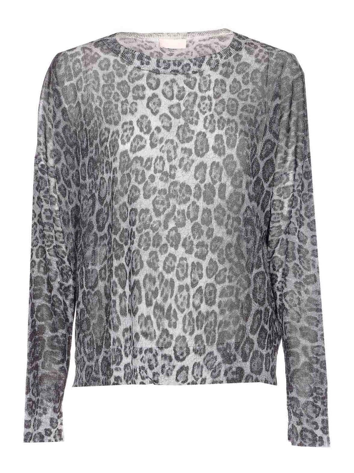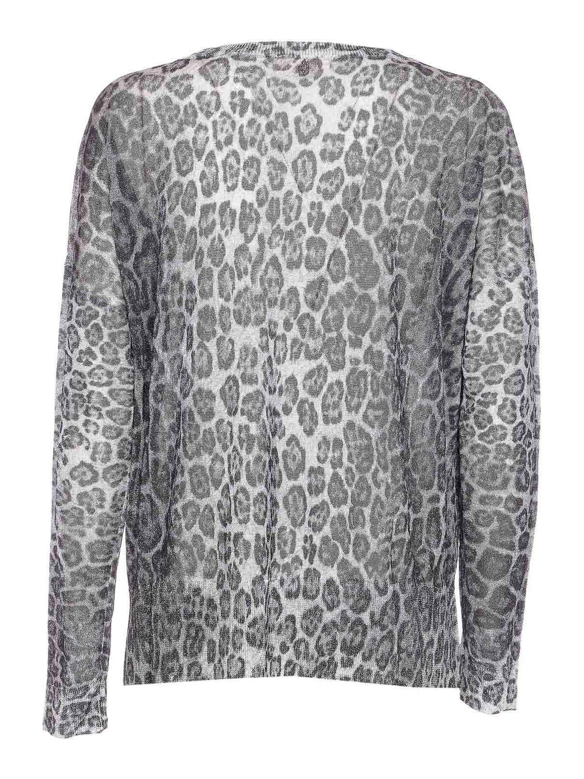 Pull bleu Liu Jo à col rond à manches longues imprimé léopard
